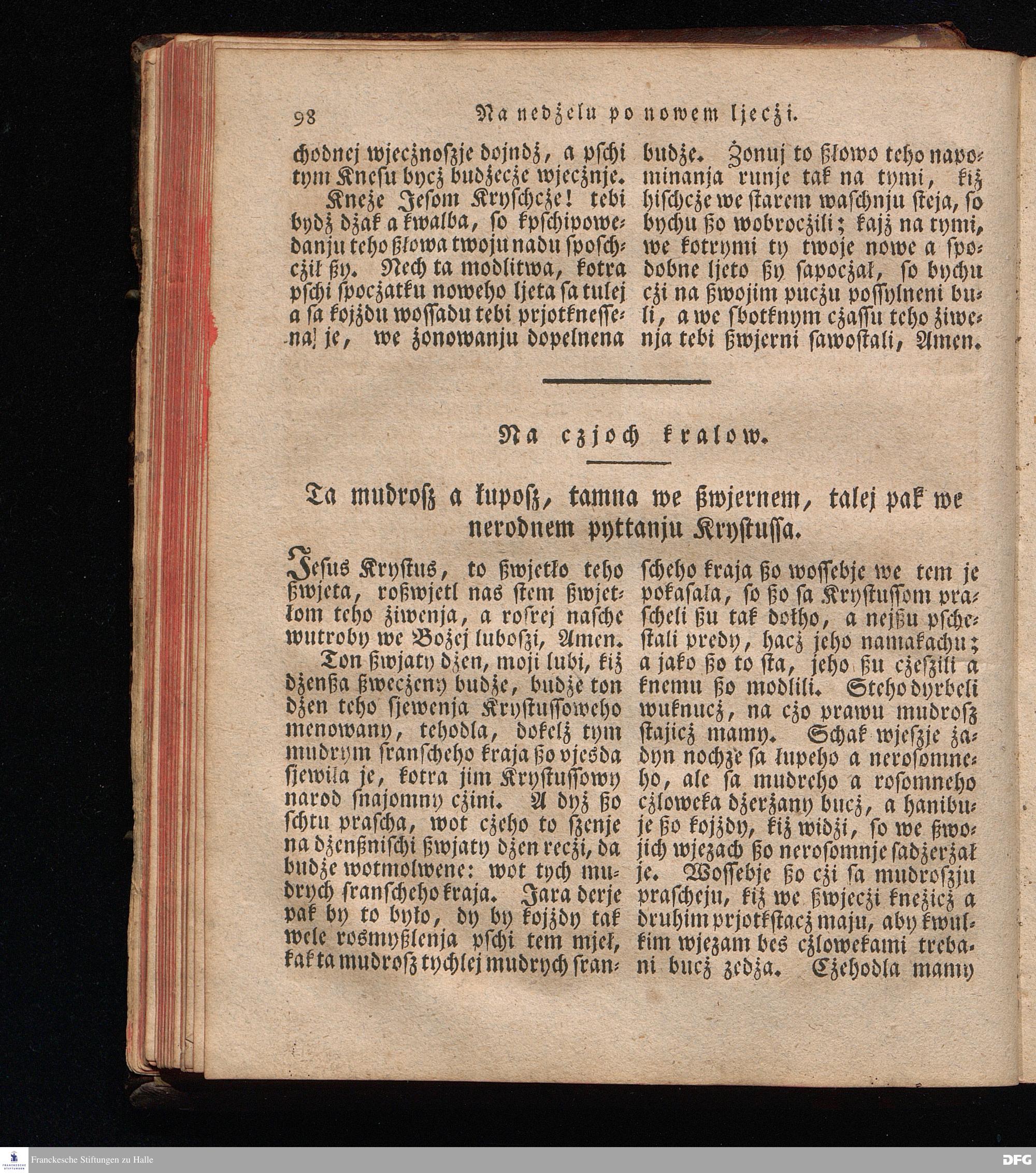 Prjedowanja na nedzelje a ßwjate dny, dzerzane a we njemskej reczi wohndate wot Knesa August Herrmann Franki [!] ßwojim czaßu Duchomneho w Hali na zyrkwi Ulricha, kotrez je do ßerskej reczje pschelozai Ernst Rychtar, Duchomny Roßaczizy, a czischczecz dal Jan Christian Samuel Pilz, Knihowwjasar Lubiju. w lieczi 1826.