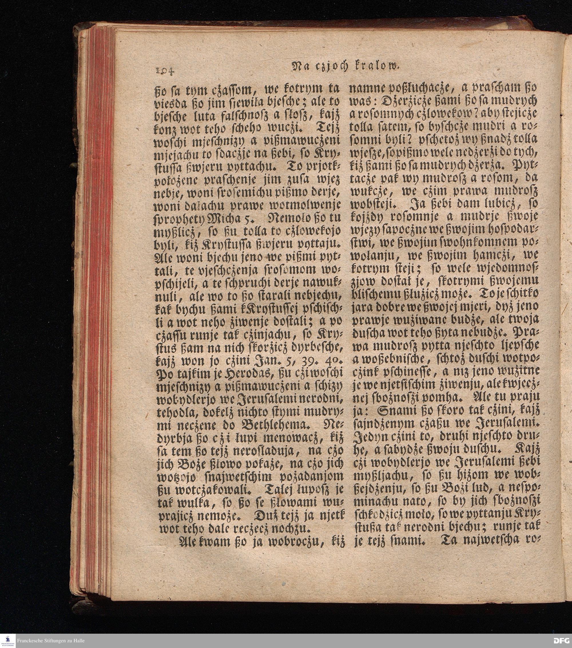 Prjedowanja na nedzelje a ßwjate dny, dzerzane a we njemskej reczi wohndate wot Knesa August Herrmann Franki [!] ßwojim czaßu Duchomneho w Hali na zyrkwi Ulricha, kotrez je do ßerskej reczje pschelozai Ernst Rychtar, Duchomny Roßaczizy, a czischczecz dal Jan Christian Samuel Pilz, Knihowwjasar Lubiju. w lieczi 1826.