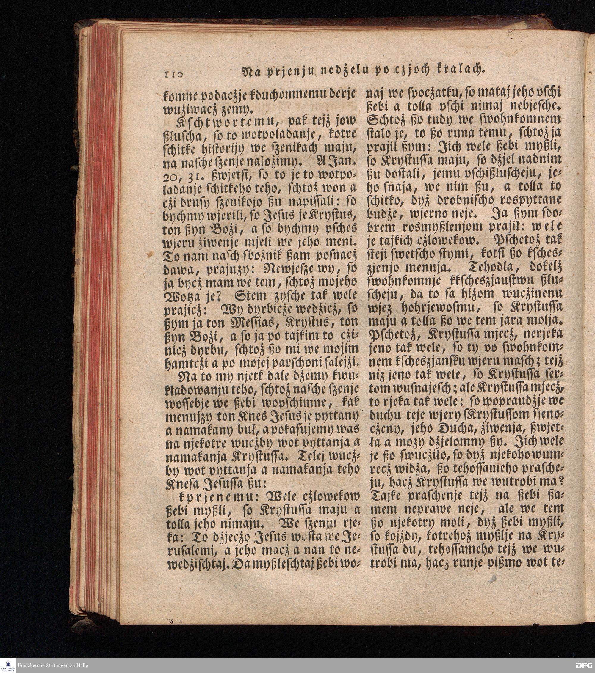 Prjedowanja na nedzelje a ßwjate dny, dzerzane a we njemskej reczi wohndate wot Knesa August Herrmann Franki [!] ßwojim czaßu Duchomneho w Hali na zyrkwi Ulricha, kotrez je do ßerskej reczje pschelozai Ernst Rychtar, Duchomny Roßaczizy, a czischczecz dal Jan Christian Samuel Pilz, Knihowwjasar Lubiju. w lieczi 1826.