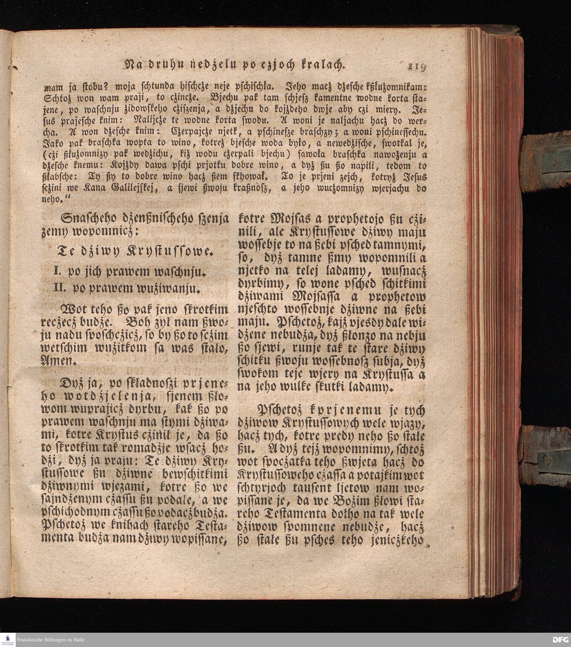 Prjedowanja na nedzelje a ßwjate dny, dzerzane a we njemskej reczi wohndate wot Knesa August Herrmann Franki [!] ßwojim czaßu Duchomneho w Hali na zyrkwi Ulricha, kotrez je do ßerskej reczje pschelozai Ernst Rychtar, Duchomny Roßaczizy, a czischczecz dal Jan Christian Samuel Pilz, Knihowwjasar Lubiju. w lieczi 1826.