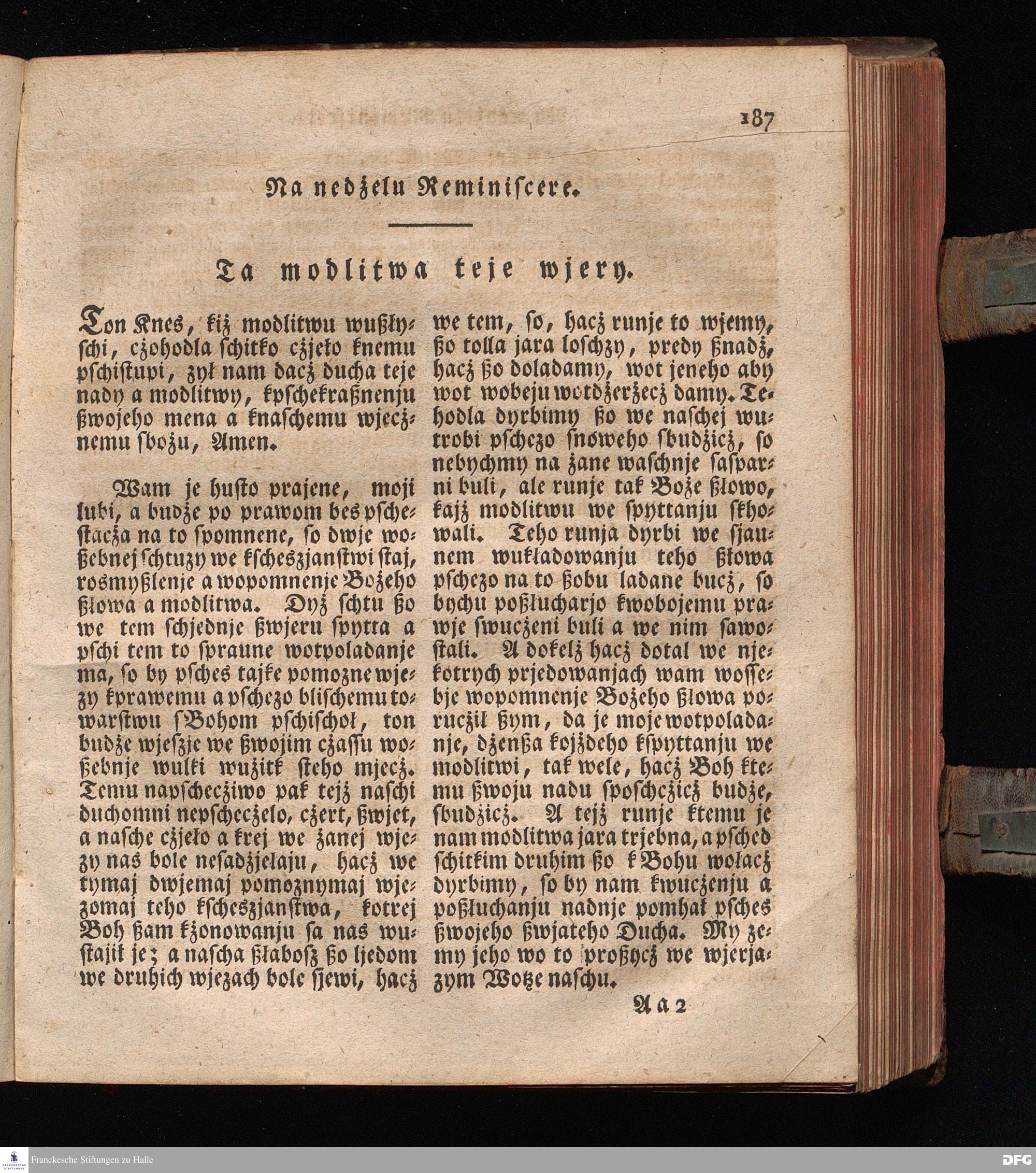 Prjedowanja na nedzelje a ßwjate dny, dzerzane a we njemskej reczi wohndate wot Knesa August Herrmann Franki [!] ßwojim czaßu Duchomneho w Hali na zyrkwi Ulricha, kotrez je do ßerskej reczje pschelozai Ernst Rychtar, Duchomny Roßaczizy, a czischczecz dal Jan Christian Samuel Pilz, Knihowwjasar Lubiju. w lieczi 1826.