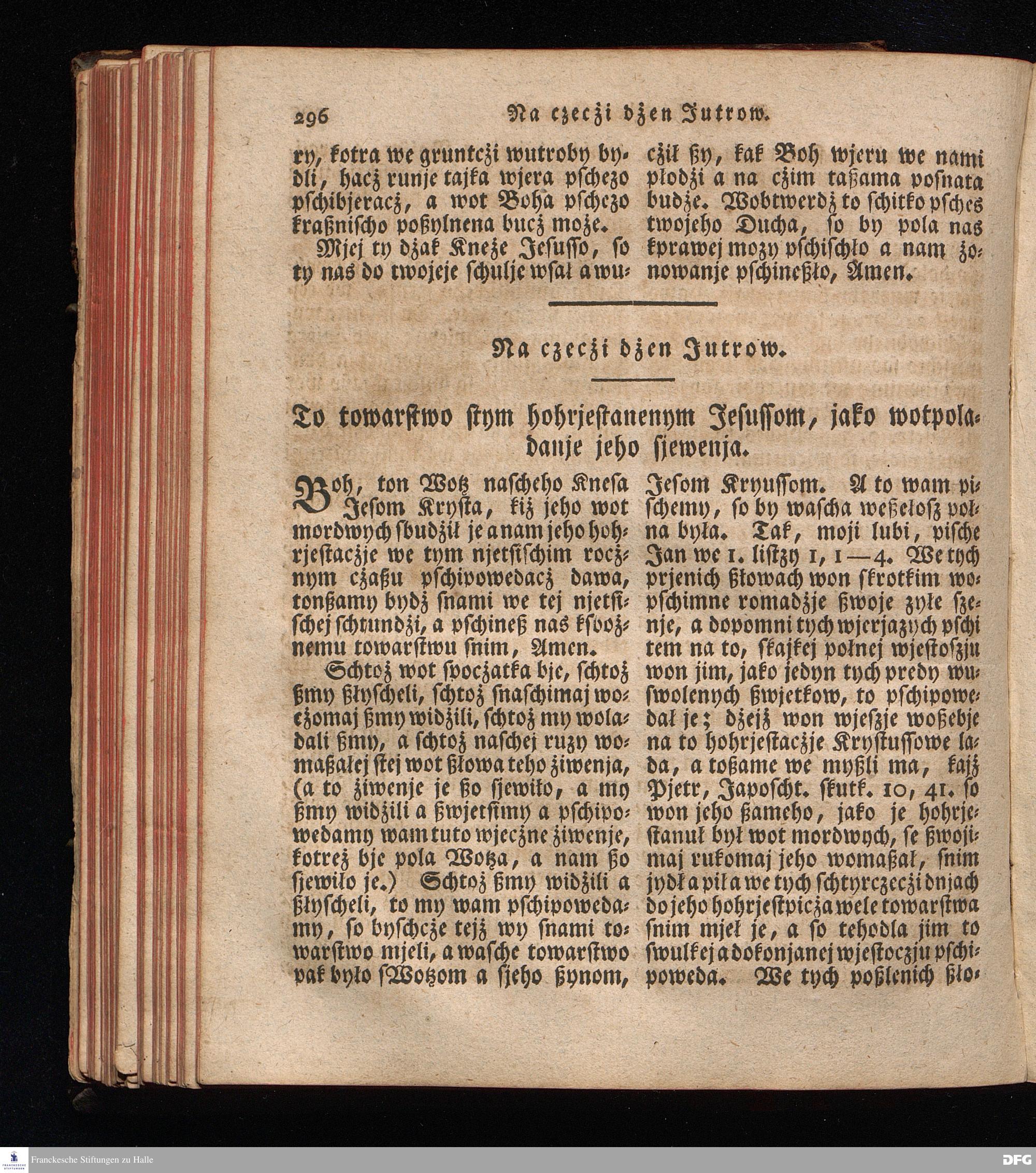 Prjedowanja na nedzelje a ßwjate dny, dzerzane a we njemskej reczi wohndate wot Knesa August Herrmann Franki [!] ßwojim czaßu Duchomneho w Hali na zyrkwi Ulricha, kotrez je do ßerskej reczje pschelozai Ernst Rychtar, Duchomny Roßaczizy, a czischczecz dal Jan Christian Samuel Pilz, Knihowwjasar Lubiju. w lieczi 1826.