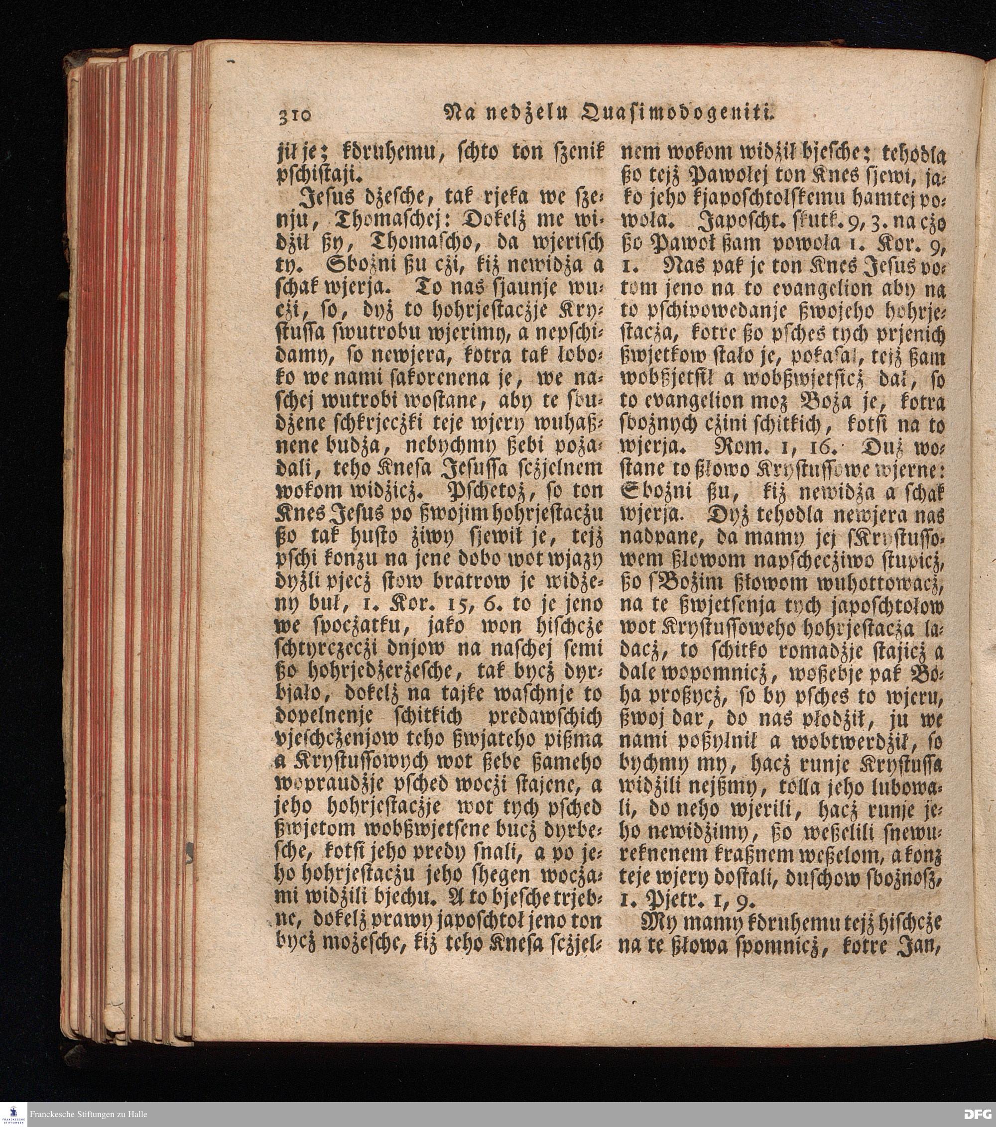 Prjedowanja na nedzelje a ßwjate dny, dzerzane a we njemskej reczi wohndate wot Knesa August Herrmann Franki [!] ßwojim czaßu Duchomneho w Hali na zyrkwi Ulricha, kotrez je do ßerskej reczje pschelozai Ernst Rychtar, Duchomny Roßaczizy, a czischczecz dal Jan Christian Samuel Pilz, Knihowwjasar Lubiju. w lieczi 1826.