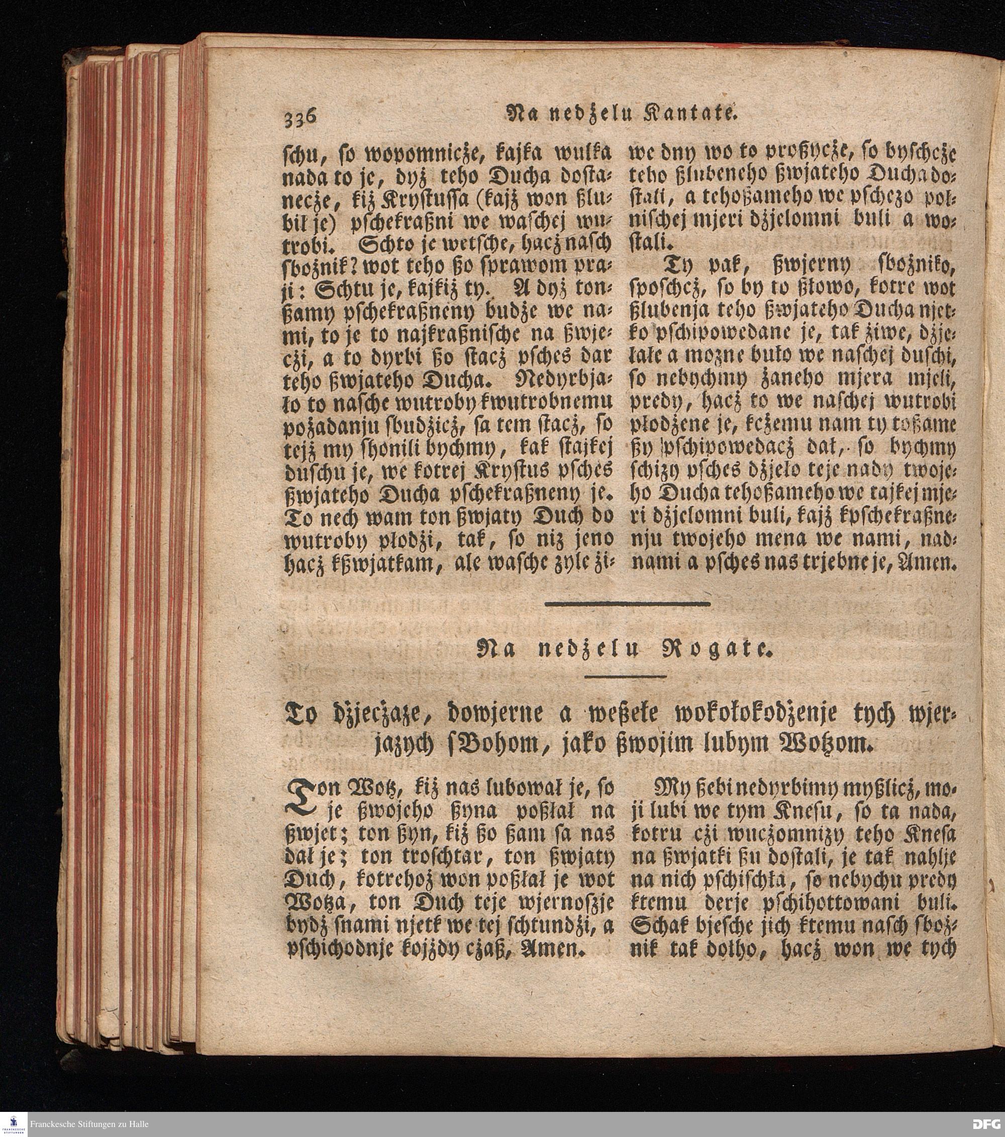 Prjedowanja na nedzelje a ßwjate dny, dzerzane a we njemskej reczi wohndate wot Knesa August Herrmann Franki [!] ßwojim czaßu Duchomneho w Hali na zyrkwi Ulricha, kotrez je do ßerskej reczje pschelozai Ernst Rychtar, Duchomny Roßaczizy, a czischczecz dal Jan Christian Samuel Pilz, Knihowwjasar Lubiju. w lieczi 1826.