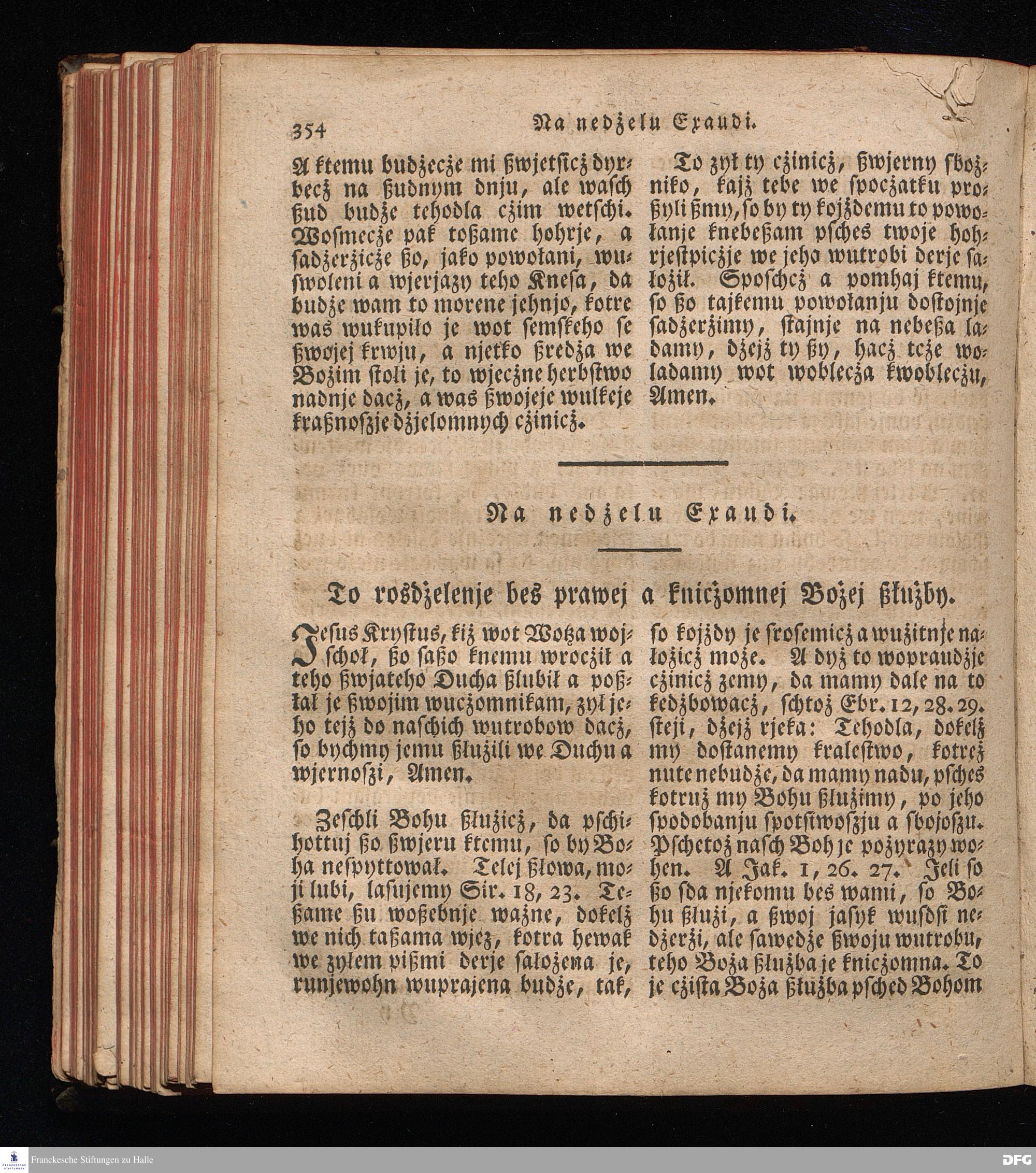 Prjedowanja na nedzelje a ßwjate dny, dzerzane a we njemskej reczi wohndate wot Knesa August Herrmann Franki [!] ßwojim czaßu Duchomneho w Hali na zyrkwi Ulricha, kotrez je do ßerskej reczje pschelozai Ernst Rychtar, Duchomny Roßaczizy, a czischczecz dal Jan Christian Samuel Pilz, Knihowwjasar Lubiju. w lieczi 1826.