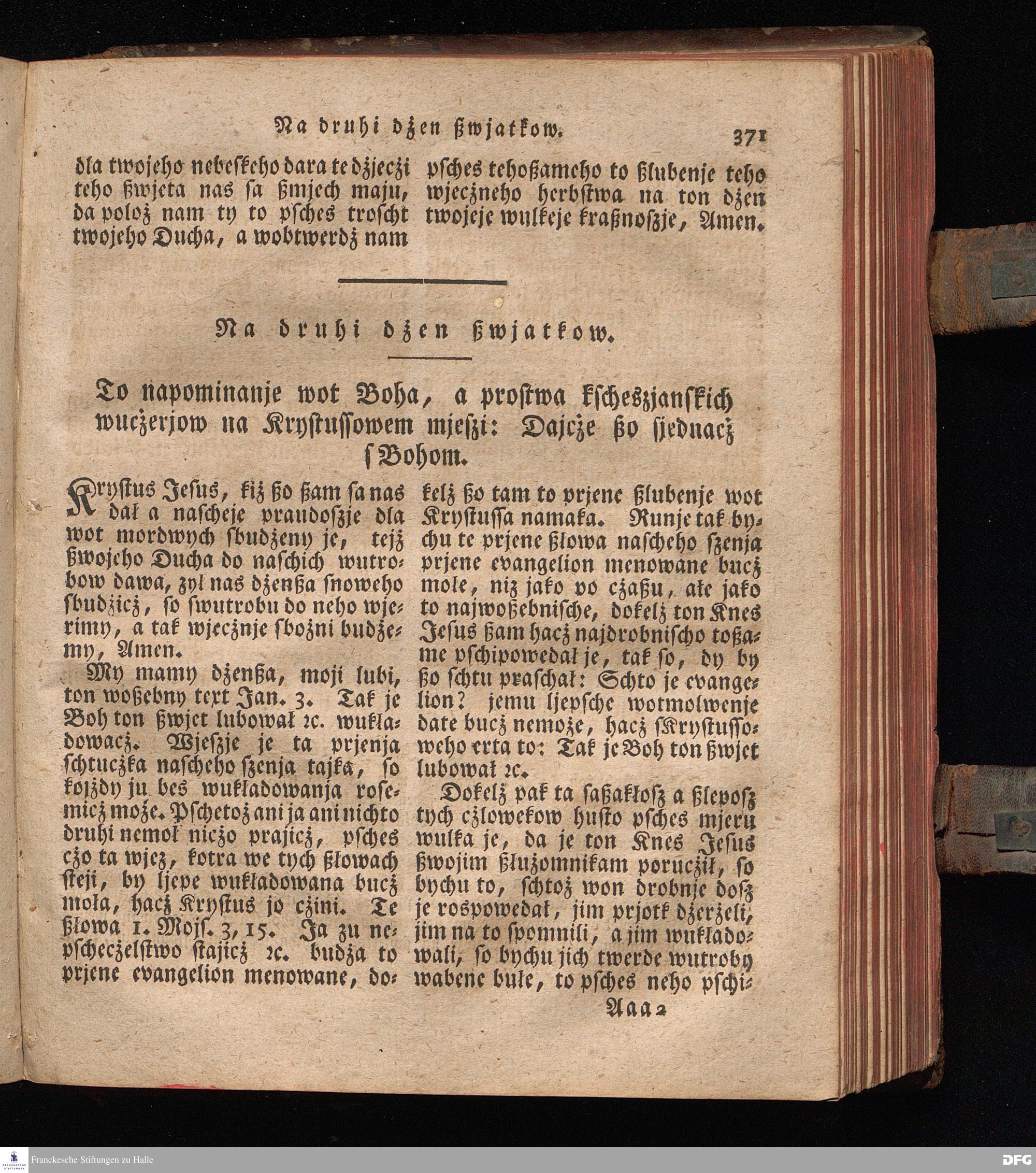 Prjedowanja na nedzelje a ßwjate dny, dzerzane a we njemskej reczi wohndate wot Knesa August Herrmann Franki [!] ßwojim czaßu Duchomneho w Hali na zyrkwi Ulricha, kotrez je do ßerskej reczje pschelozai Ernst Rychtar, Duchomny Roßaczizy, a czischczecz dal Jan Christian Samuel Pilz, Knihowwjasar Lubiju. w lieczi 1826.
