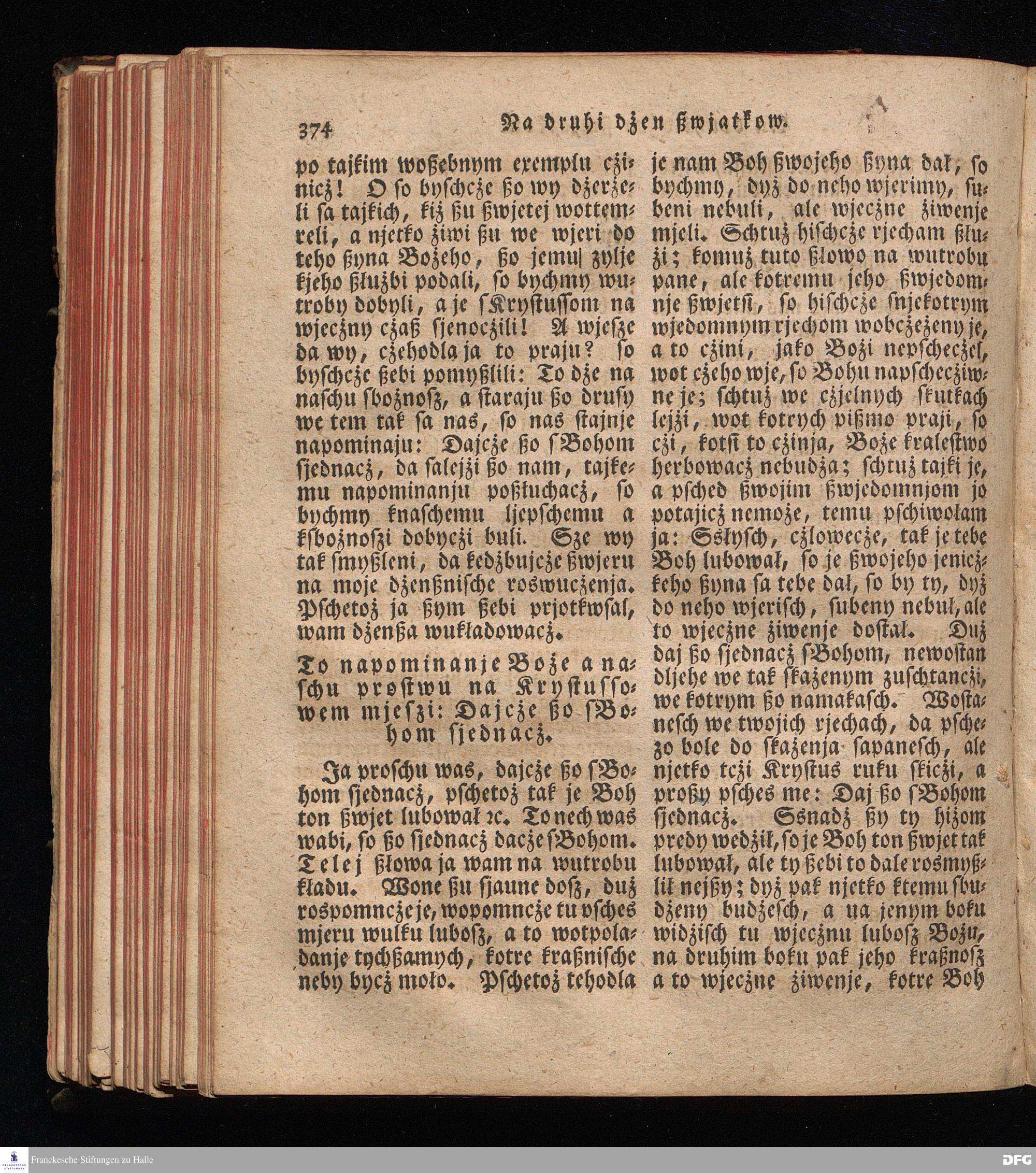 Prjedowanja na nedzelje a ßwjate dny, dzerzane a we njemskej reczi wohndate wot Knesa August Herrmann Franki [!] ßwojim czaßu Duchomneho w Hali na zyrkwi Ulricha, kotrez je do ßerskej reczje pschelozai Ernst Rychtar, Duchomny Roßaczizy, a czischczecz dal Jan Christian Samuel Pilz, Knihowwjasar Lubiju. w lieczi 1826.