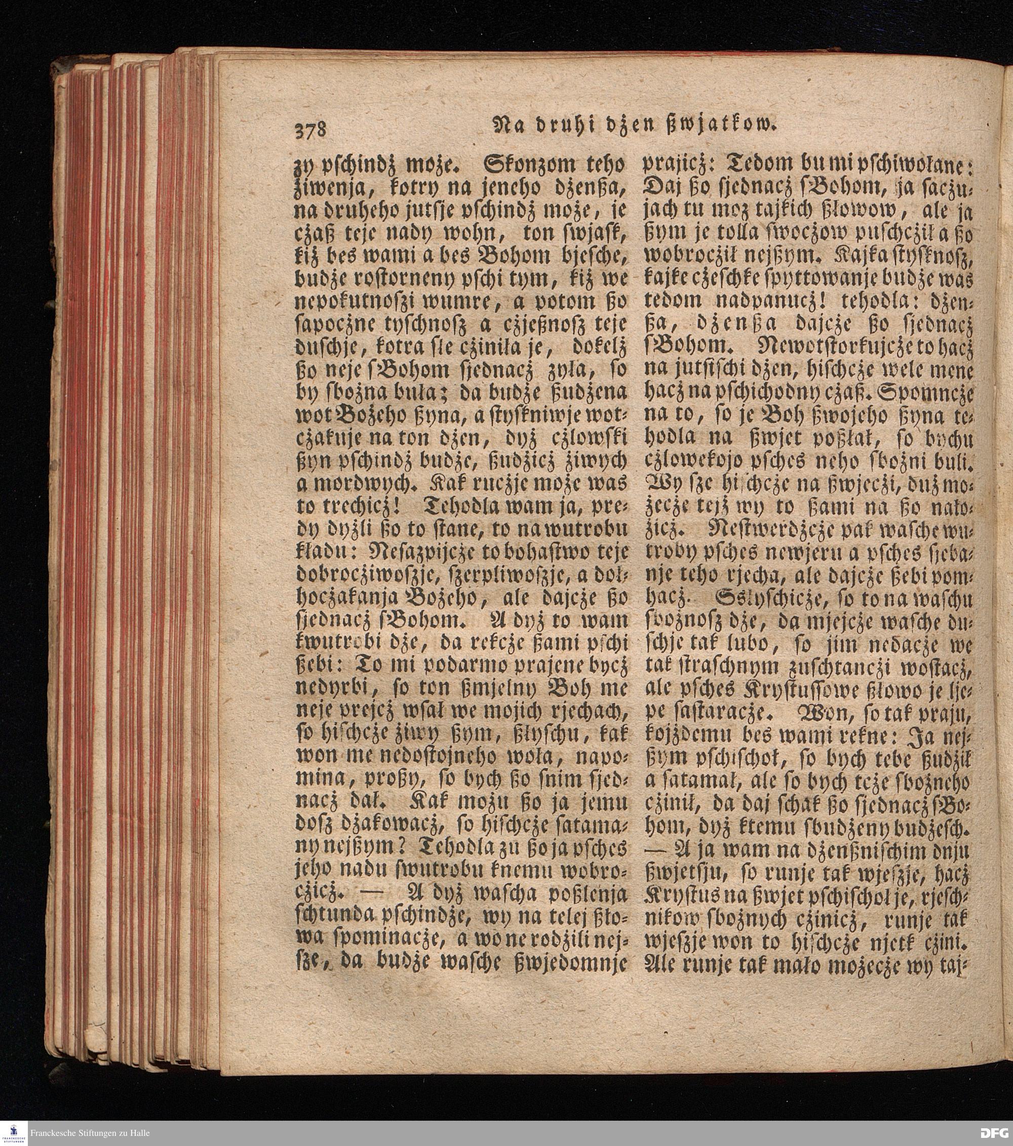 Prjedowanja na nedzelje a ßwjate dny, dzerzane a we njemskej reczi wohndate wot Knesa August Herrmann Franki [!] ßwojim czaßu Duchomneho w Hali na zyrkwi Ulricha, kotrez je do ßerskej reczje pschelozai Ernst Rychtar, Duchomny Roßaczizy, a czischczecz dal Jan Christian Samuel Pilz, Knihowwjasar Lubiju. w lieczi 1826.