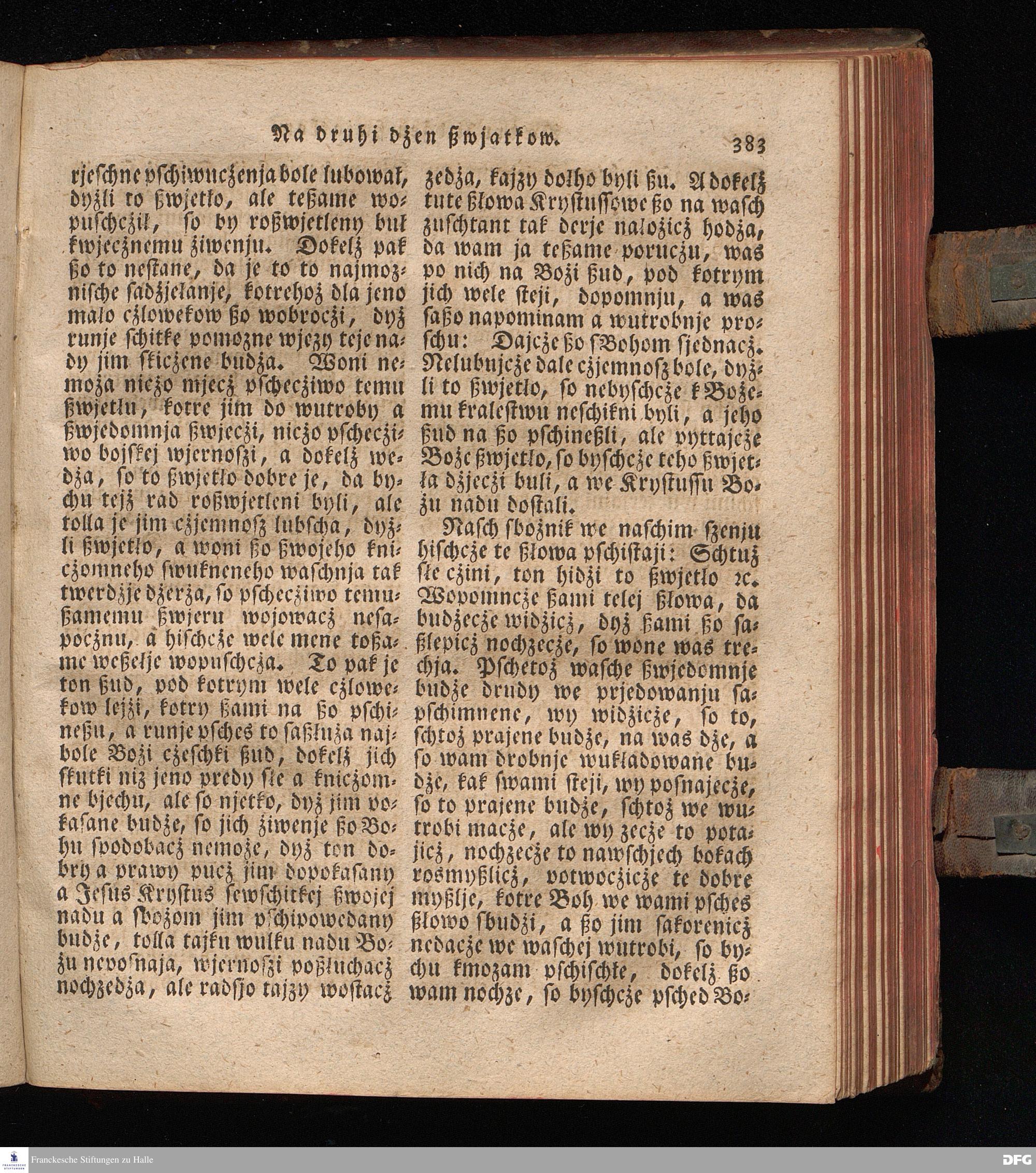 Prjedowanja na nedzelje a ßwjate dny, dzerzane a we njemskej reczi wohndate wot Knesa August Herrmann Franki [!] ßwojim czaßu Duchomneho w Hali na zyrkwi Ulricha, kotrez je do ßerskej reczje pschelozai Ernst Rychtar, Duchomny Roßaczizy, a czischczecz dal Jan Christian Samuel Pilz, Knihowwjasar Lubiju. w lieczi 1826.