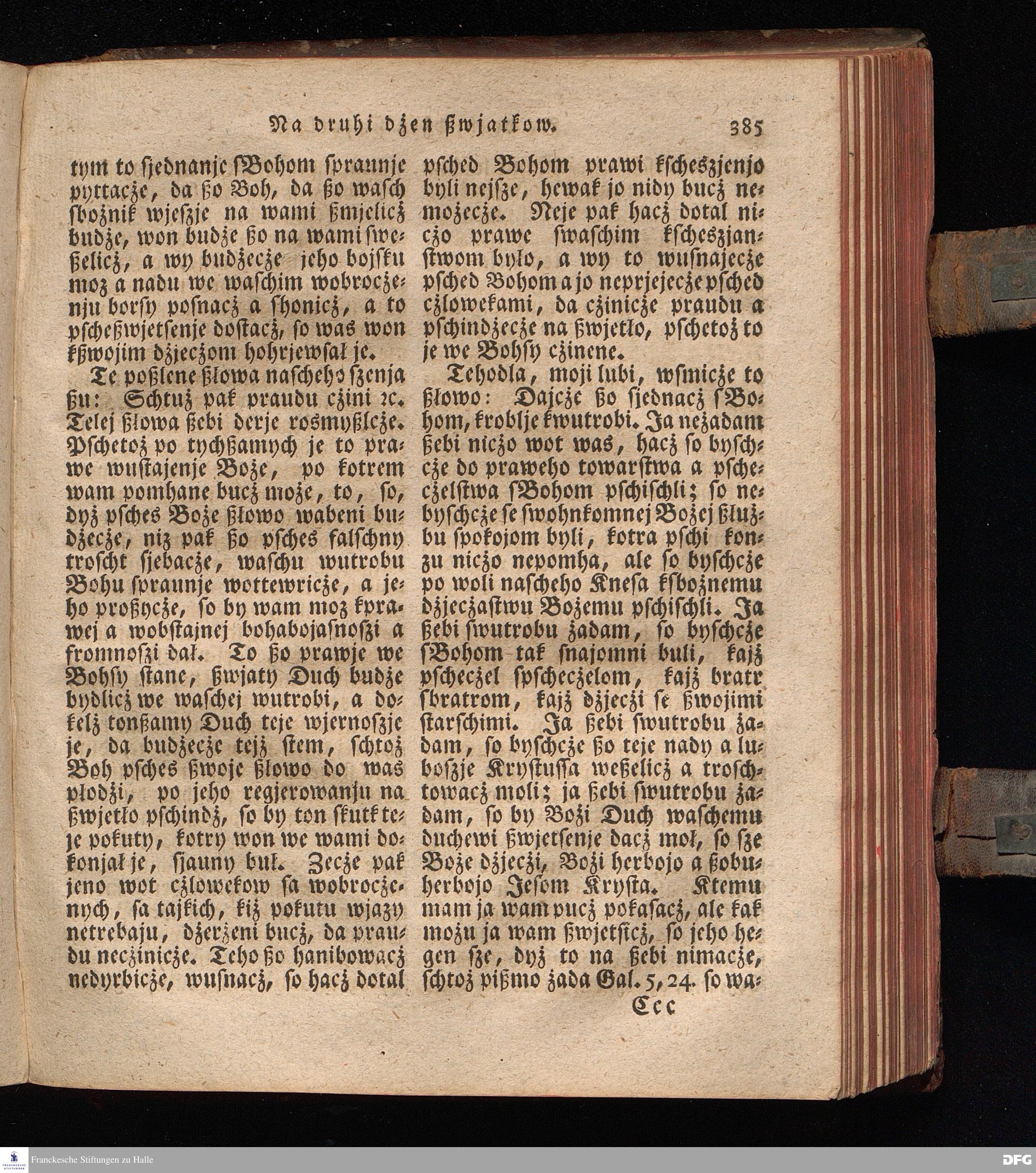Prjedowanja na nedzelje a ßwjate dny, dzerzane a we njemskej reczi wohndate wot Knesa August Herrmann Franki [!] ßwojim czaßu Duchomneho w Hali na zyrkwi Ulricha, kotrez je do ßerskej reczje pschelozai Ernst Rychtar, Duchomny Roßaczizy, a czischczecz dal Jan Christian Samuel Pilz, Knihowwjasar Lubiju. w lieczi 1826.