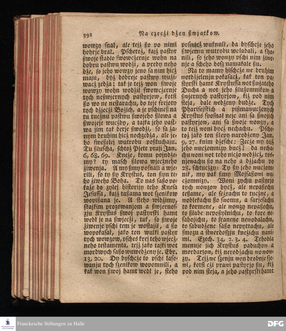 Prjedowanja na nedzelje a ßwjate dny, dzerzane a we njemskej reczi wohndate wot Knesa August Herrmann Franki [!] ßwojim czaßu Duchomneho w Hali na zyrkwi Ulricha, kotrez je do ßerskej reczje pschelozai Ernst Rychtar, Duchomny Roßaczizy, a czischczecz dal Jan Christian Samuel Pilz, Knihowwjasar Lubiju. w lieczi 1826.