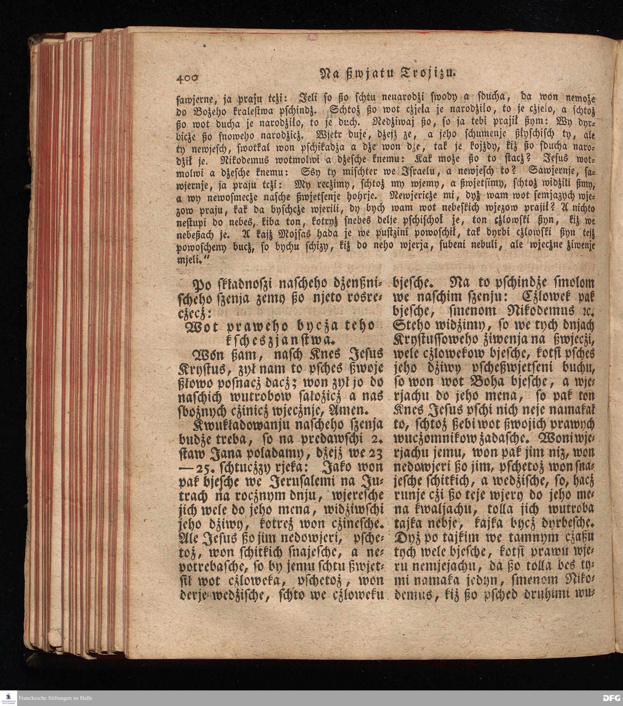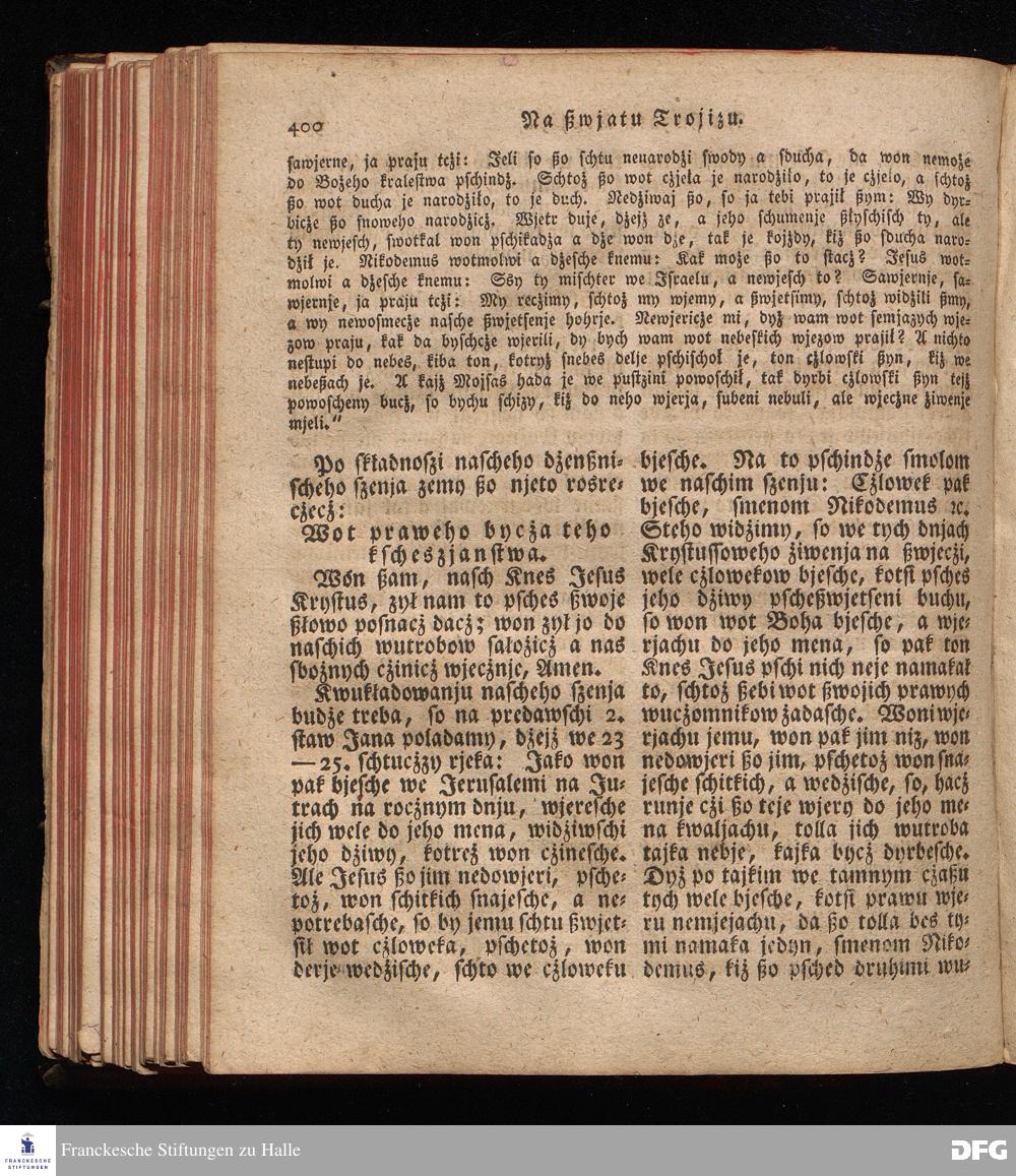 Prjedowanja na nedzelje a ßwjate dny, dzerzane a we njemskej reczi wohndate wot Knesa August Herrmann Franki [!] ßwojim czaßu Duchomneho w Hali na zyrkwi Ulricha, kotrez je do ßerskej reczje pschelozai Ernst Rychtar, Duchomny Roßaczizy, a czischczecz dal Jan Christian Samuel Pilz, Knihowwjasar Lubiju. w lieczi 1826.