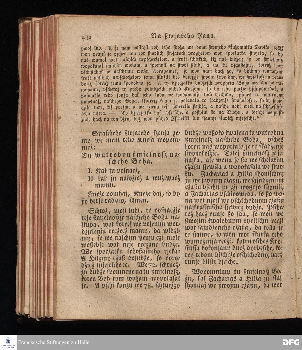 Prjedowanja na nedzelje a ßwjate dny, dzerzane a we njemskej reczi wohndate wot Knesa August Herrmann Franki [!] ßwojim czaßu Duchomneho w Hali na zyrkwi Ulricha, kotrez je do ßerskej reczje pschelozai Ernst Rychtar, Duchomny Roßaczizy, a czischczecz dal Jan Christian Samuel Pilz, Knihowwjasar Lubiju. w lieczi 1826.