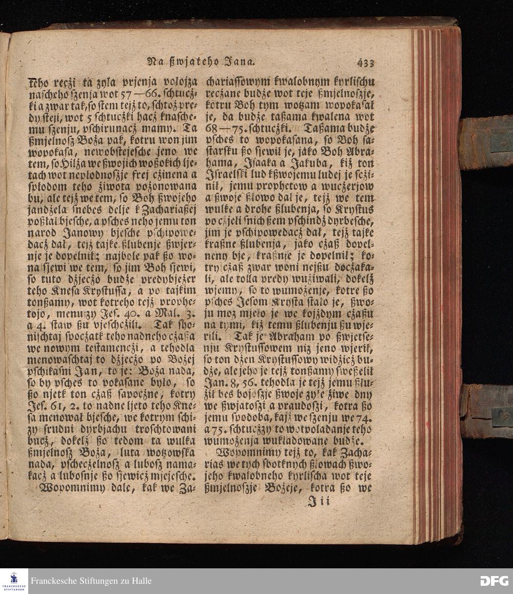 Prjedowanja na nedzelje a ßwjate dny, dzerzane a we njemskej reczi wohndate wot Knesa August Herrmann Franki [!] ßwojim czaßu Duchomneho w Hali na zyrkwi Ulricha, kotrez je do ßerskej reczje pschelozai Ernst Rychtar, Duchomny Roßaczizy, a czischczecz dal Jan Christian Samuel Pilz, Knihowwjasar Lubiju. w lieczi 1826.