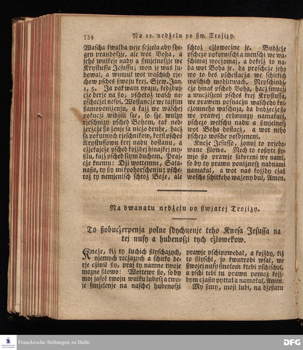 Prjedowanja na nedzelje a ßwjate dny, dzerzane a we njemskej reczi wohndate wot Knesa August Herrmann Franki [!] ßwojim czaßu Duchomneho w Hali na zyrkwi Ulricha, kotrez je do ßerskej reczje pschelozai Ernst Rychtar, Duchomny Roßaczizy, a czischczecz dal Jan Christian Samuel Pilz, Knihowwjasar Lubiju. w lieczi 1826.