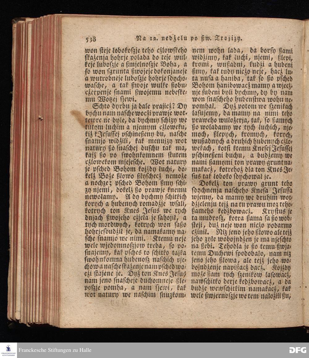 Prjedowanja na nedzelje a ßwjate dny, dzerzane a we njemskej reczi wohndate wot Knesa August Herrmann Franki [!] ßwojim czaßu Duchomneho w Hali na zyrkwi Ulricha, kotrez je do ßerskej reczje pschelozai Ernst Rychtar, Duchomny Roßaczizy, a czischczecz dal Jan Christian Samuel Pilz, Knihowwjasar Lubiju. w lieczi 1826.