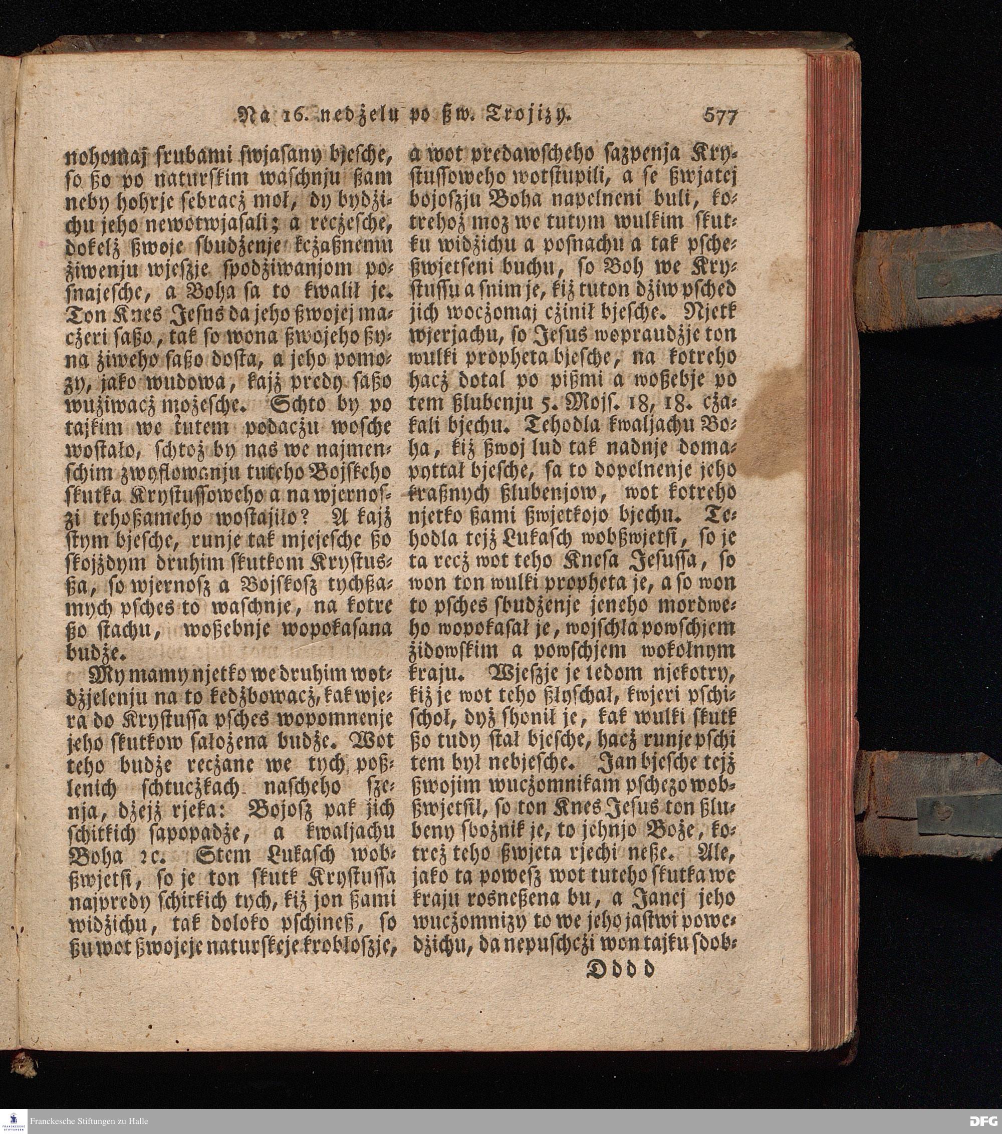 Prjedowanja na nedzelje a ßwjate dny, dzerzane a we njemskej reczi wohndate wot Knesa August Herrmann Franki [!] ßwojim czaßu Duchomneho w Hali na zyrkwi Ulricha, kotrez je do ßerskej reczje pschelozai Ernst Rychtar, Duchomny Roßaczizy, a czischczecz dal Jan Christian Samuel Pilz, Knihowwjasar Lubiju. w lieczi 1826.