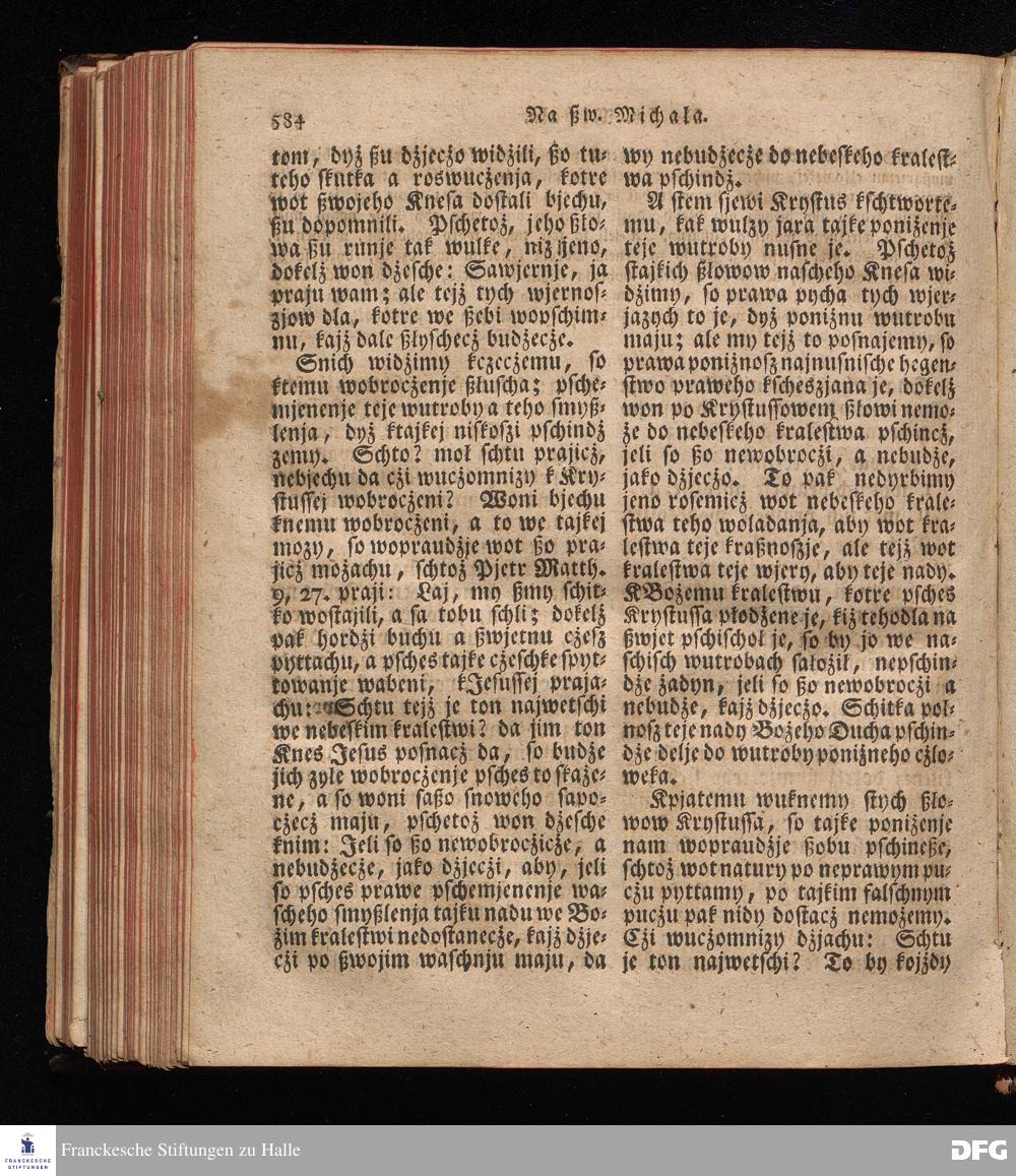 Prjedowanja na nedzelje a ßwjate dny, dzerzane a we njemskej reczi wohndate wot Knesa August Herrmann Franki [!] ßwojim czaßu Duchomneho w Hali na zyrkwi Ulricha, kotrez je do ßerskej reczje pschelozai Ernst Rychtar, Duchomny Roßaczizy, a czischczecz dal Jan Christian Samuel Pilz, Knihowwjasar Lubiju. w lieczi 1826.