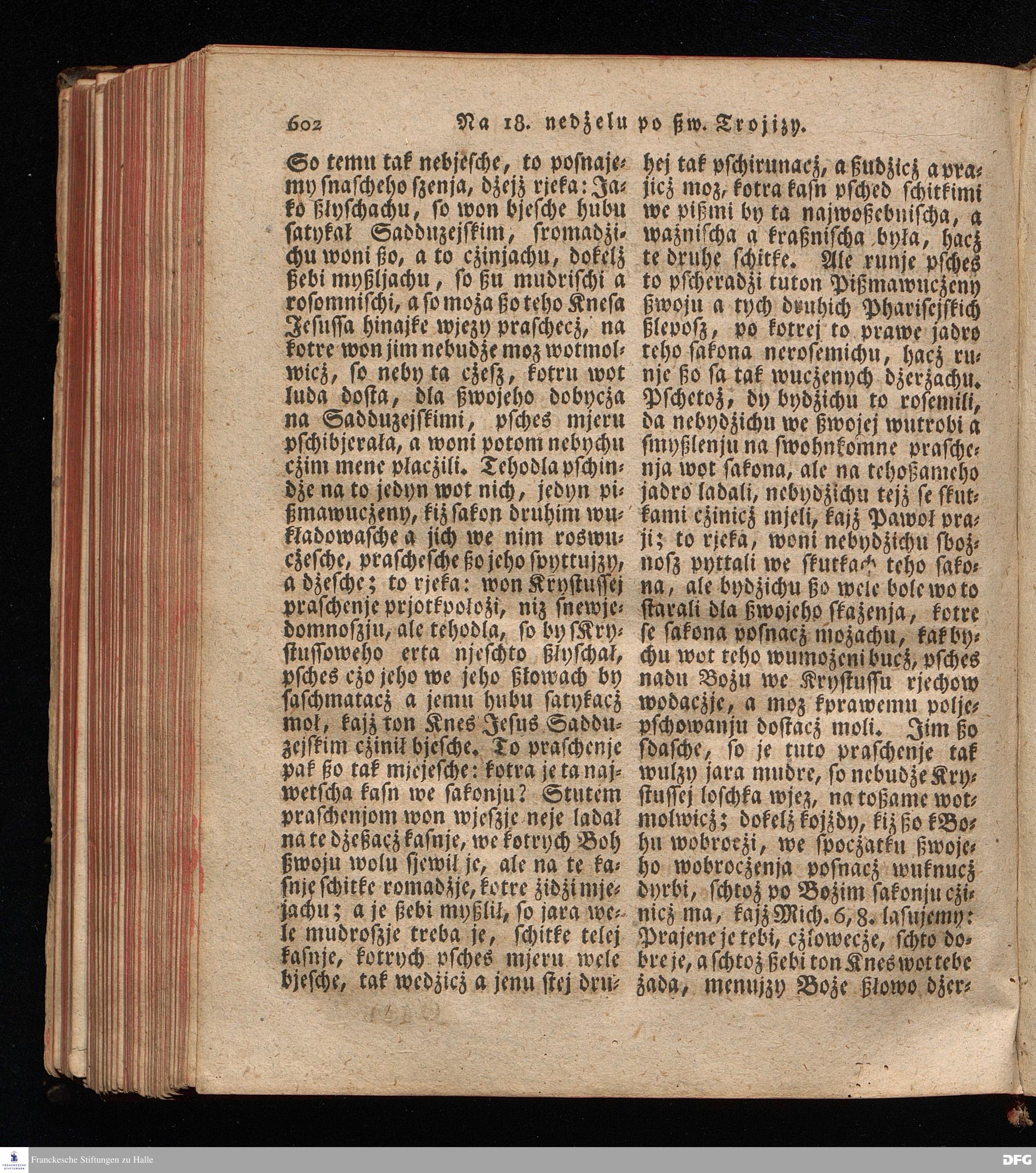 Prjedowanja na nedzelje a ßwjate dny, dzerzane a we njemskej reczi wohndate wot Knesa August Herrmann Franki [!] ßwojim czaßu Duchomneho w Hali na zyrkwi Ulricha, kotrez je do ßerskej reczje pschelozai Ernst Rychtar, Duchomny Roßaczizy, a czischczecz dal Jan Christian Samuel Pilz, Knihowwjasar Lubiju. w lieczi 1826.