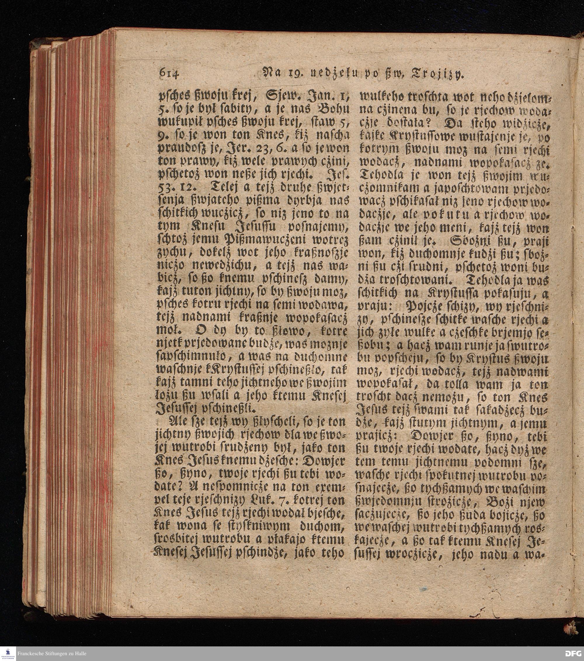 Prjedowanja na nedzelje a ßwjate dny, dzerzane a we njemskej reczi wohndate wot Knesa August Herrmann Franki [!] ßwojim czaßu Duchomneho w Hali na zyrkwi Ulricha, kotrez je do ßerskej reczje pschelozai Ernst Rychtar, Duchomny Roßaczizy, a czischczecz dal Jan Christian Samuel Pilz, Knihowwjasar Lubiju. w lieczi 1826.