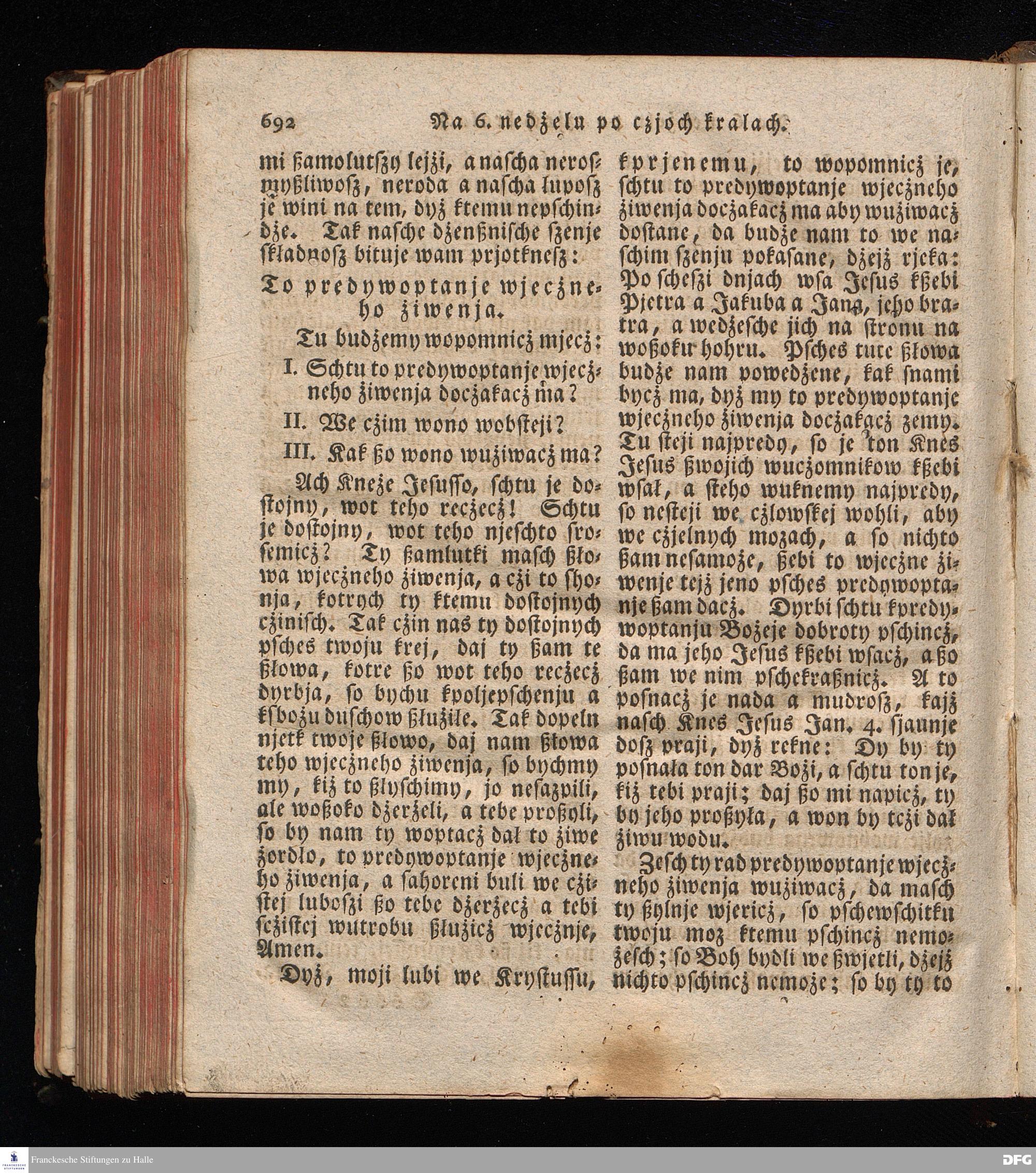 Prjedowanja na nedzelje a ßwjate dny, dzerzane a we njemskej reczi wohndate wot Knesa August Herrmann Franki [!] ßwojim czaßu Duchomneho w Hali na zyrkwi Ulricha, kotrez je do ßerskej reczje pschelozai Ernst Rychtar, Duchomny Roßaczizy, a czischczecz dal Jan Christian Samuel Pilz, Knihowwjasar Lubiju. w lieczi 1826.