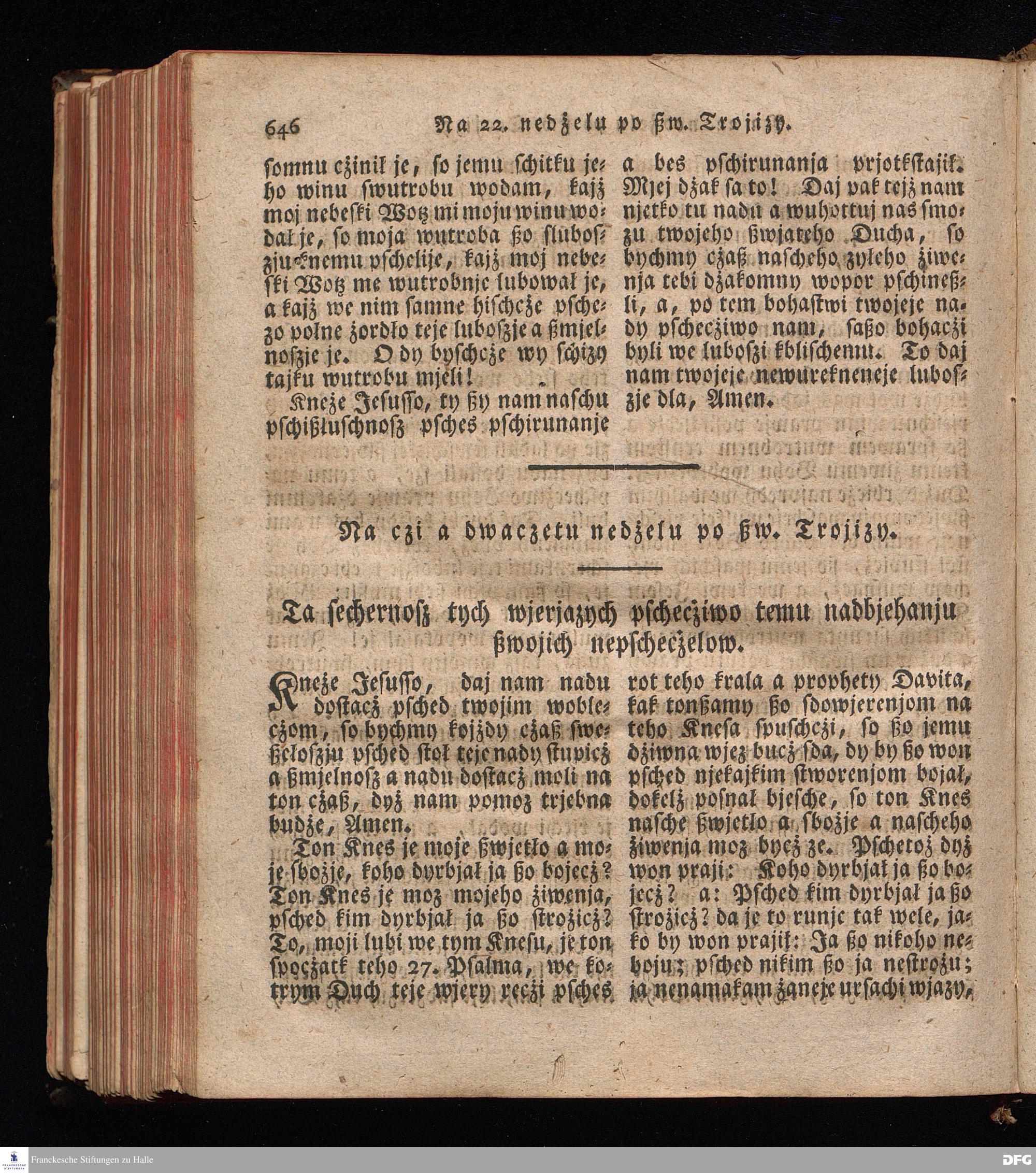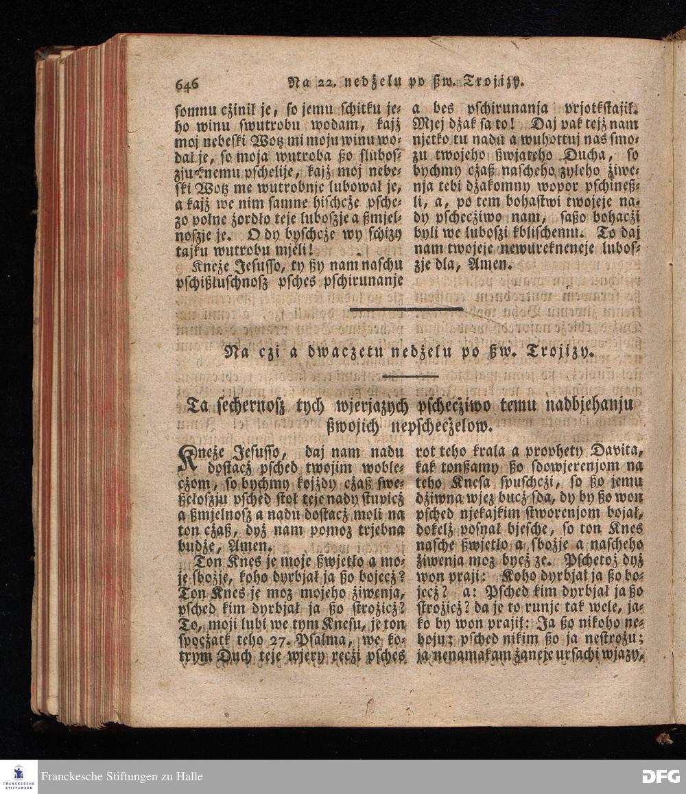 Prjedowanja na nedzelje a ßwjate dny, dzerzane a we njemskej reczi wohndate wot Knesa August Herrmann Franki [!] ßwojim czaßu Duchomneho w Hali na zyrkwi Ulricha, kotrez je do ßerskej reczje pschelozai Ernst Rychtar, Duchomny Roßaczizy, a czischczecz dal Jan Christian Samuel Pilz, Knihowwjasar Lubiju. w lieczi 1826.