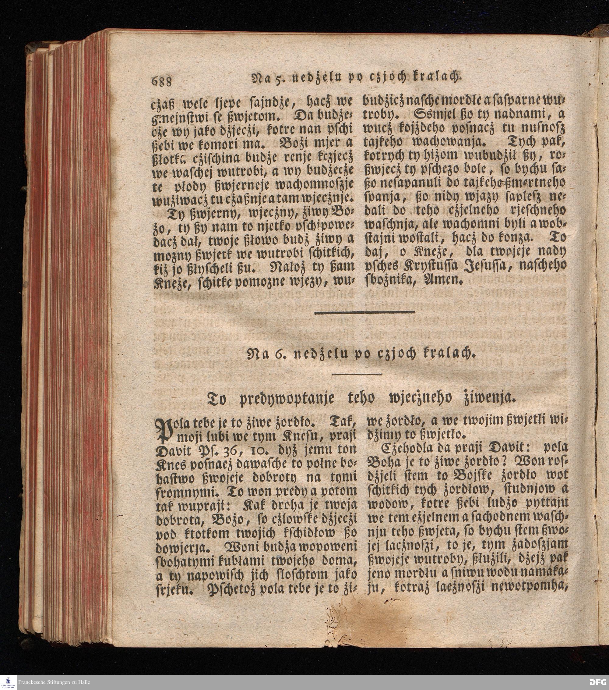 Prjedowanja na nedzelje a ßwjate dny, dzerzane a we njemskej reczi wohndate wot Knesa August Herrmann Franki [!] ßwojim czaßu Duchomneho w Hali na zyrkwi Ulricha, kotrez je do ßerskej reczje pschelozai Ernst Rychtar, Duchomny Roßaczizy, a czischczecz dal Jan Christian Samuel Pilz, Knihowwjasar Lubiju. w lieczi 1826.