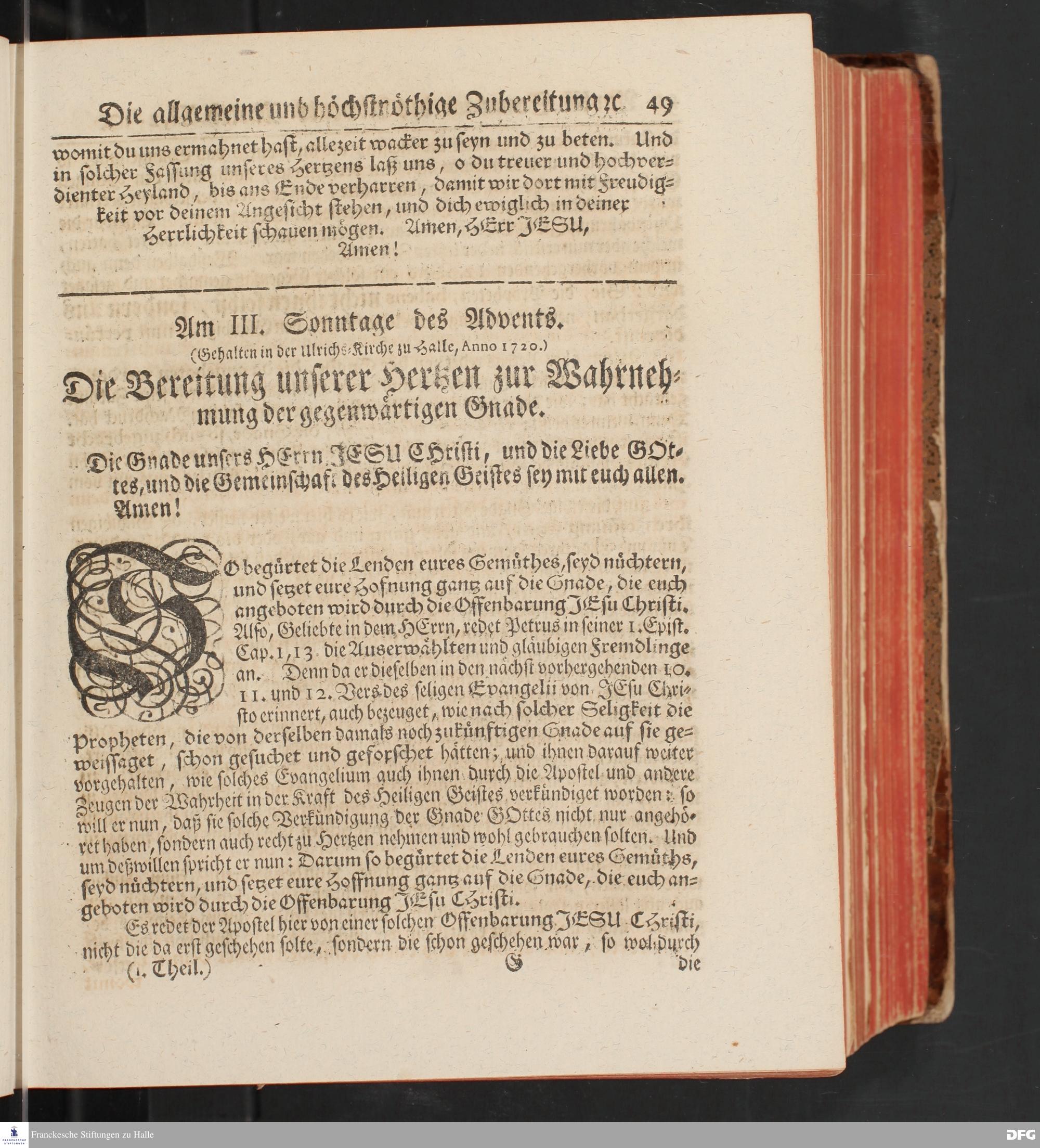 August Hermann Franckens, S.Theol.Prof.und Past. Sonn= und Fest=Tags=Predigten / Welche Theils in Halle, theils an verschiedenen auswärtigen Oertern, von wichtigen und auserlesenen Materien gehalten worden, Nebst Vorbereitung auf die hohen Feste und nützlichen Registern. Dritte Auflage. HALLE, gedruckt und verlegt im Wäysen=Hause MDCCXL. Mit Königl.Preuß.und Churfl.Brandenb.Privileg.