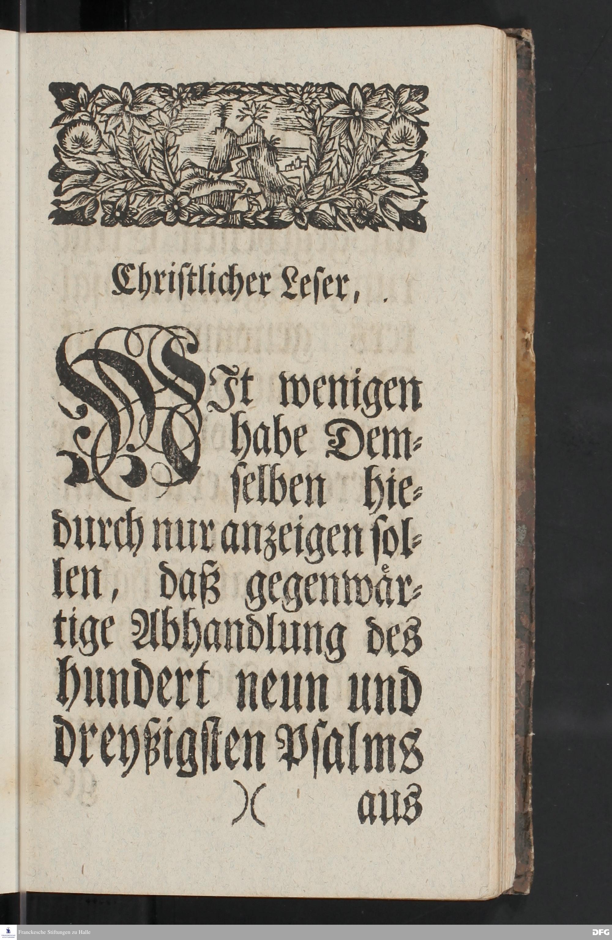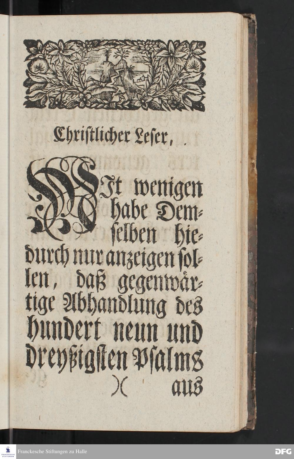 August Hermann Franckens, Weyl.Prof.Theol.Past.Ulr.und Schol. Erklärung Des hundert und neun und dreyßigsten Psalms / Auf Verlangen besonders herausgegeben Von Gotthilf August Francken, S.Theol.Prof.Ord.der ersten Dioeces des Saal=Creyses Insp.u.Pred.zur L.Fr. Andere Auflage. HALLE, In Verlegung des Wäysenhauses, 1739.