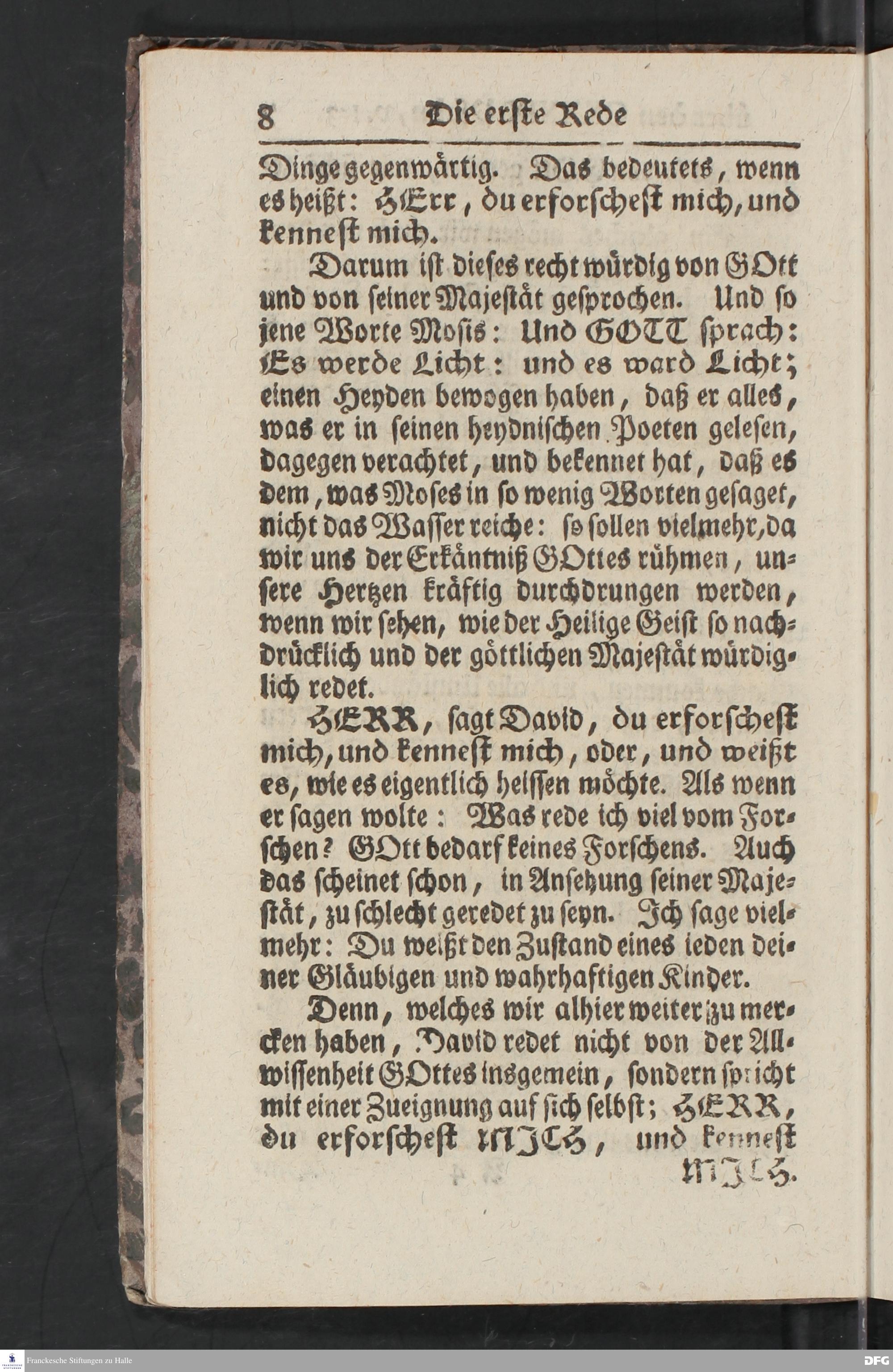 August Hermann Franckens, Weyl.Prof.Theol.Past.Ulr.und Schol. Erklärung Des hundert und neun und dreyßigsten Psalms / Auf Verlangen besonders herausgegeben Von Gotthilf August Francken, S.Theol.Prof.Ord.der ersten Dioeces des Saal=Creyses Insp.u.Pred.zur L.Fr. Andere Auflage. HALLE, In Verlegung des Wäysenhauses, 1739.