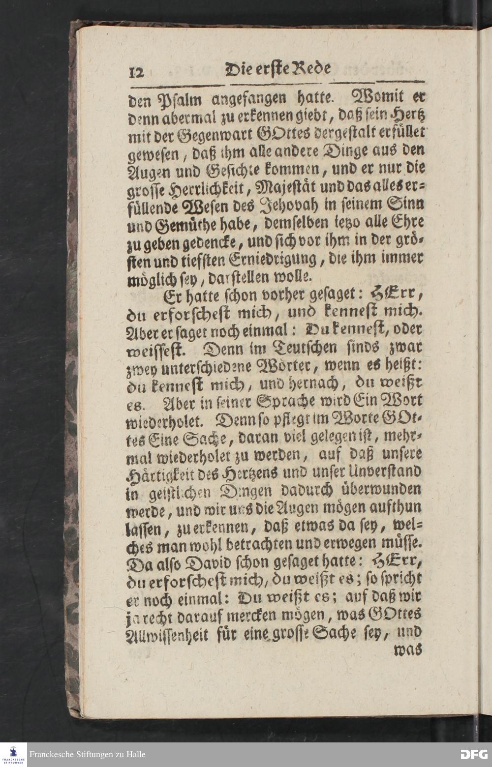 August Hermann Franckens, Weyl.Prof.Theol.Past.Ulr.und Schol. Erklärung Des hundert und neun und dreyßigsten Psalms / Auf Verlangen besonders herausgegeben Von Gotthilf August Francken, S.Theol.Prof.Ord.der ersten Dioeces des Saal=Creyses Insp.u.Pred.zur L.Fr. Andere Auflage. HALLE, In Verlegung des Wäysenhauses, 1739.