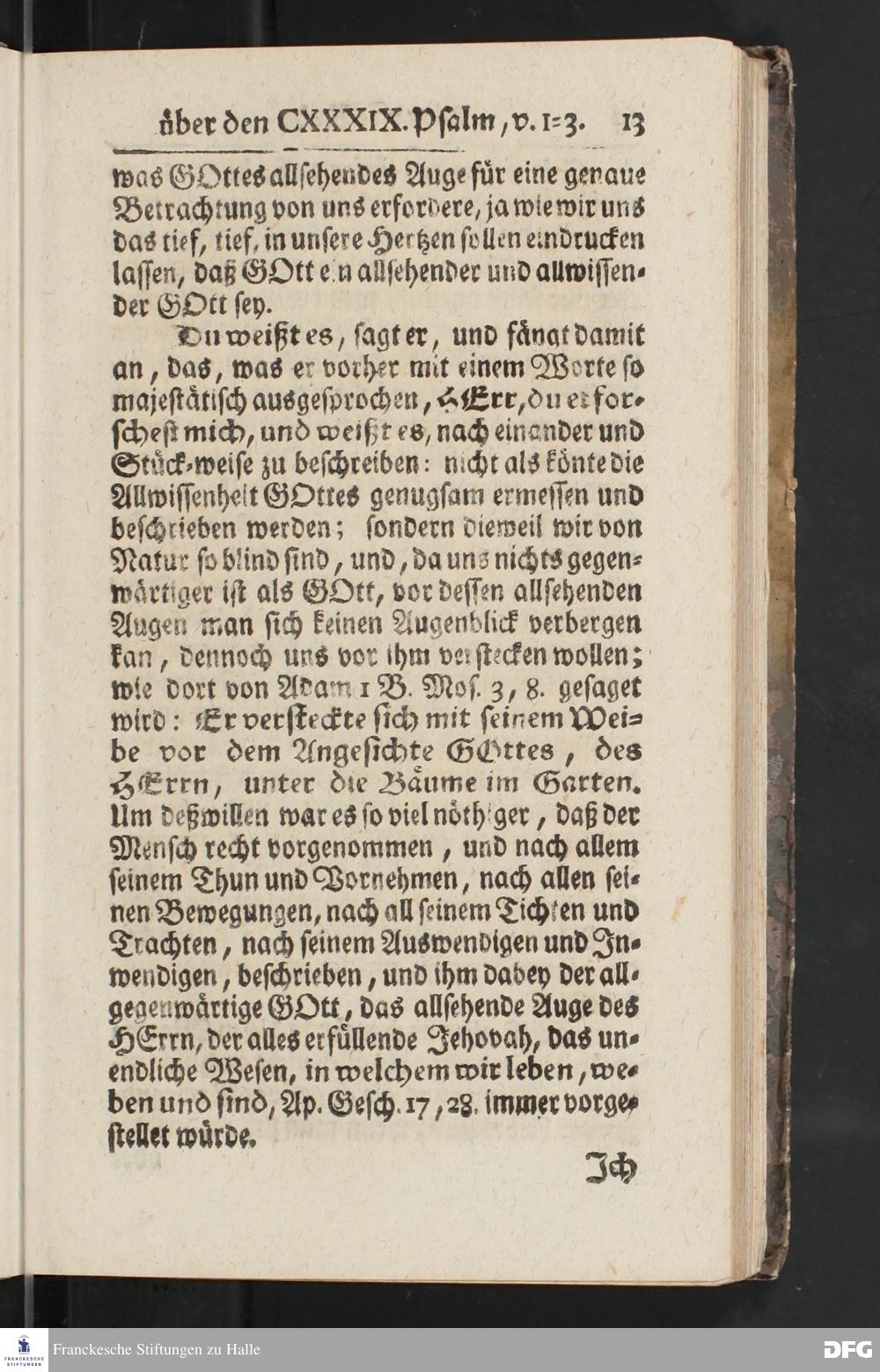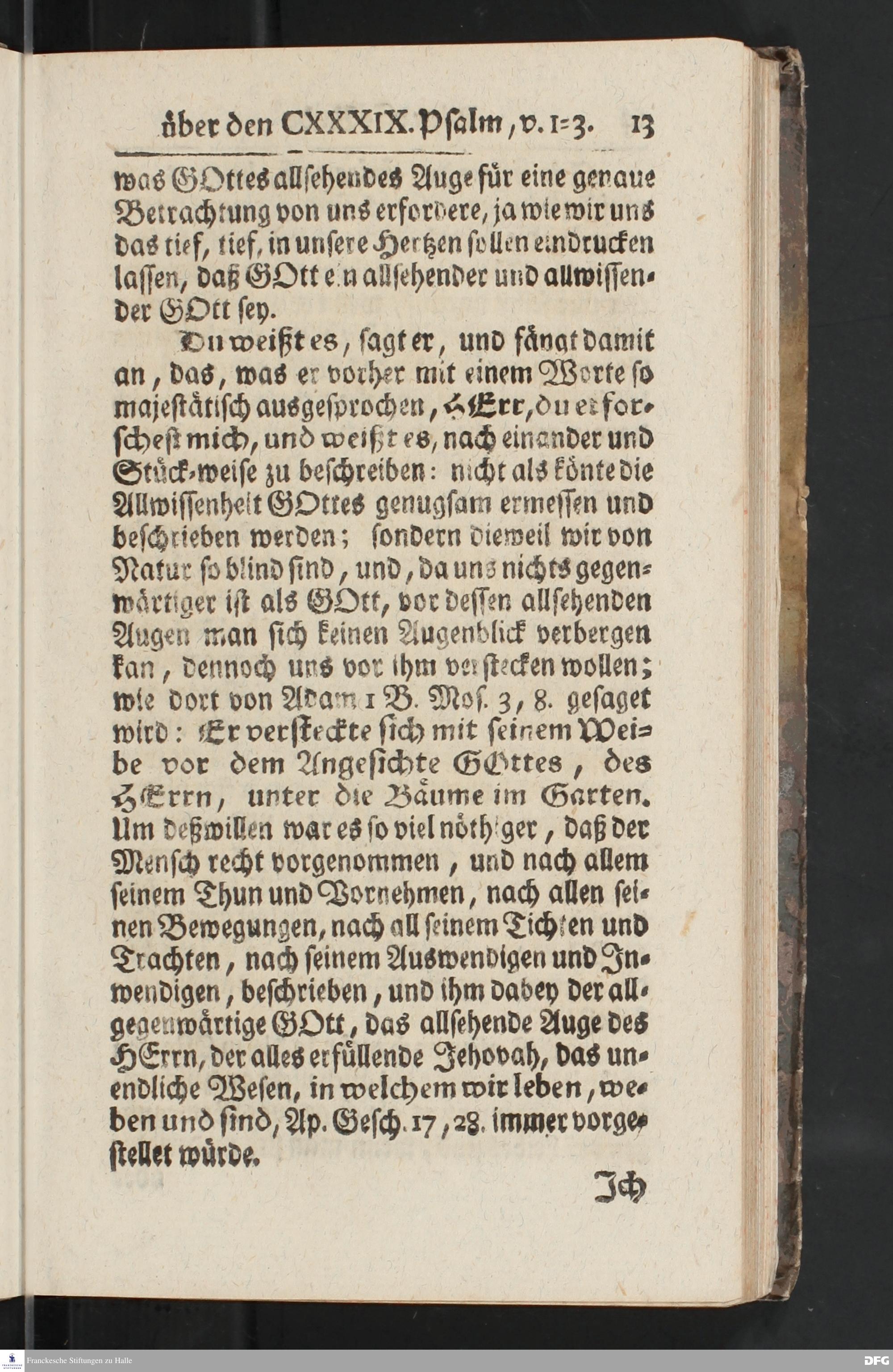 August Hermann Franckens, Weyl.Prof.Theol.Past.Ulr.und Schol. Erklärung Des hundert und neun und dreyßigsten Psalms / Auf Verlangen besonders herausgegeben Von Gotthilf August Francken, S.Theol.Prof.Ord.der ersten Dioeces des Saal=Creyses Insp.u.Pred.zur L.Fr. Andere Auflage. HALLE, In Verlegung des Wäysenhauses, 1739.