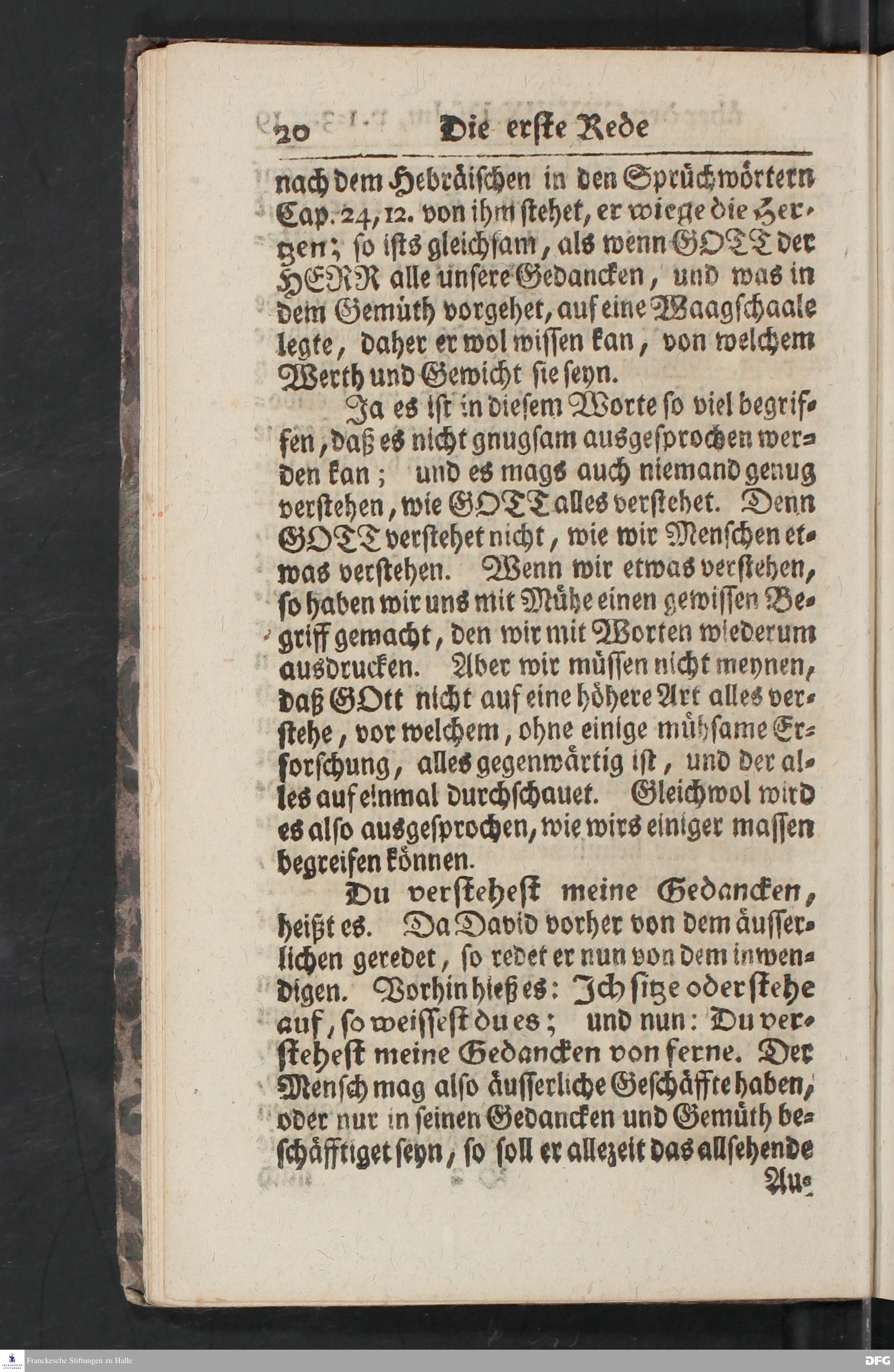 August Hermann Franckens, Weyl.Prof.Theol.Past.Ulr.und Schol. Erklärung Des hundert und neun und dreyßigsten Psalms / Auf Verlangen besonders herausgegeben Von Gotthilf August Francken, S.Theol.Prof.Ord.der ersten Dioeces des Saal=Creyses Insp.u.Pred.zur L.Fr. Andere Auflage. HALLE, In Verlegung des Wäysenhauses, 1739.
