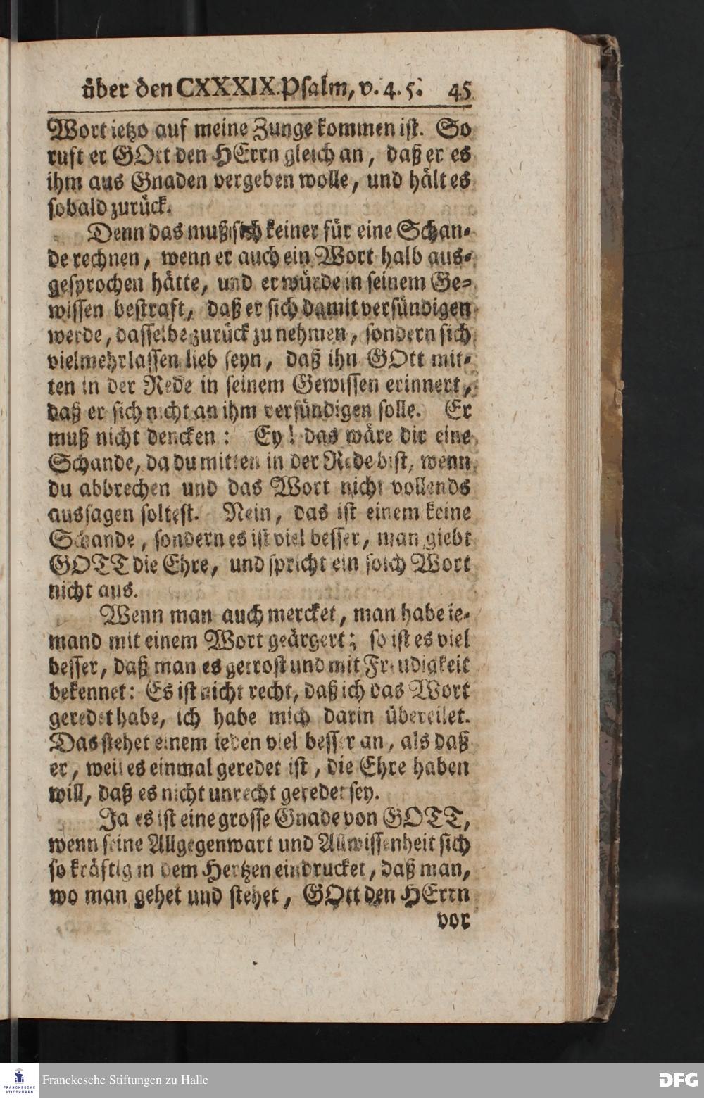 August Hermann Franckens, Weyl.Prof.Theol.Past.Ulr.und Schol. Erklärung Des hundert und neun und dreyßigsten Psalms / Auf Verlangen besonders herausgegeben Von Gotthilf August Francken, S.Theol.Prof.Ord.der ersten Dioeces des Saal=Creyses Insp.u.Pred.zur L.Fr. Andere Auflage. HALLE, In Verlegung des Wäysenhauses, 1739.
