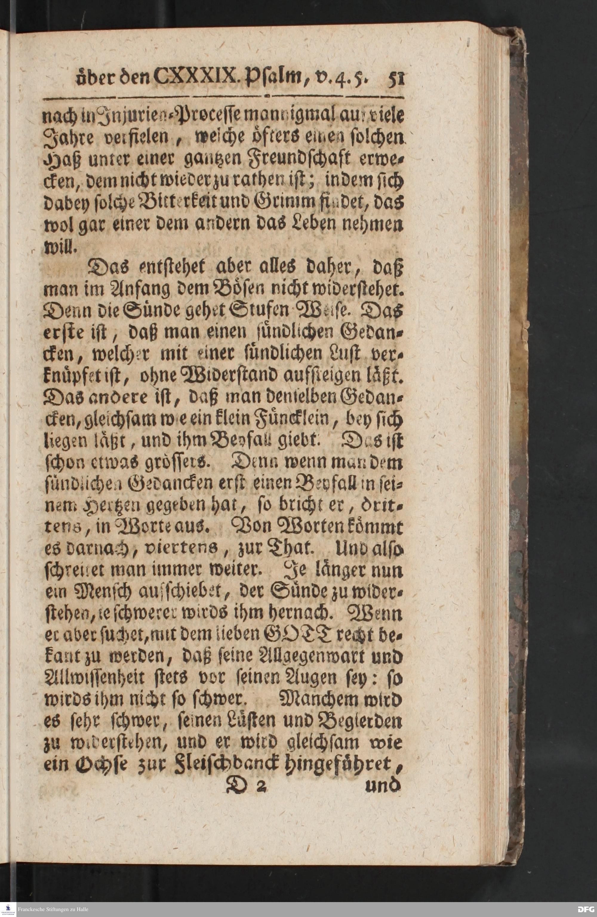August Hermann Franckens, Weyl.Prof.Theol.Past.Ulr.und Schol. Erklärung Des hundert und neun und dreyßigsten Psalms / Auf Verlangen besonders herausgegeben Von Gotthilf August Francken, S.Theol.Prof.Ord.der ersten Dioeces des Saal=Creyses Insp.u.Pred.zur L.Fr. Andere Auflage. HALLE, In Verlegung des Wäysenhauses, 1739.