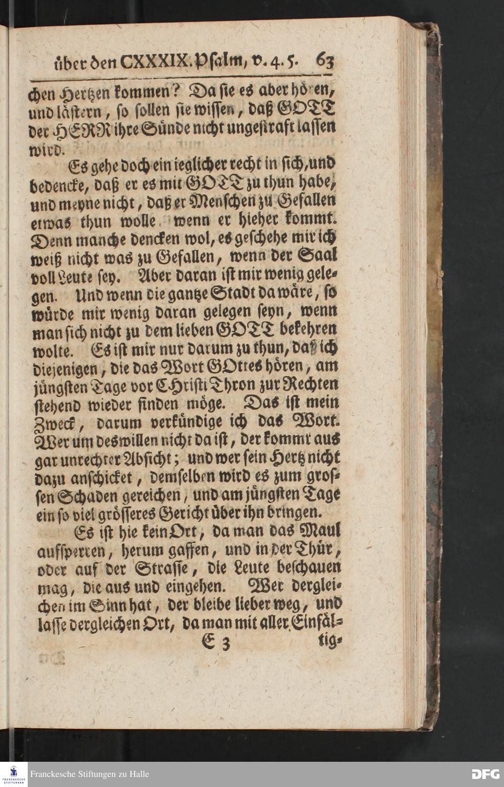 August Hermann Franckens, Weyl.Prof.Theol.Past.Ulr.und Schol. Erklärung Des hundert und neun und dreyßigsten Psalms / Auf Verlangen besonders herausgegeben Von Gotthilf August Francken, S.Theol.Prof.Ord.der ersten Dioeces des Saal=Creyses Insp.u.Pred.zur L.Fr. Andere Auflage. HALLE, In Verlegung des Wäysenhauses, 1739.