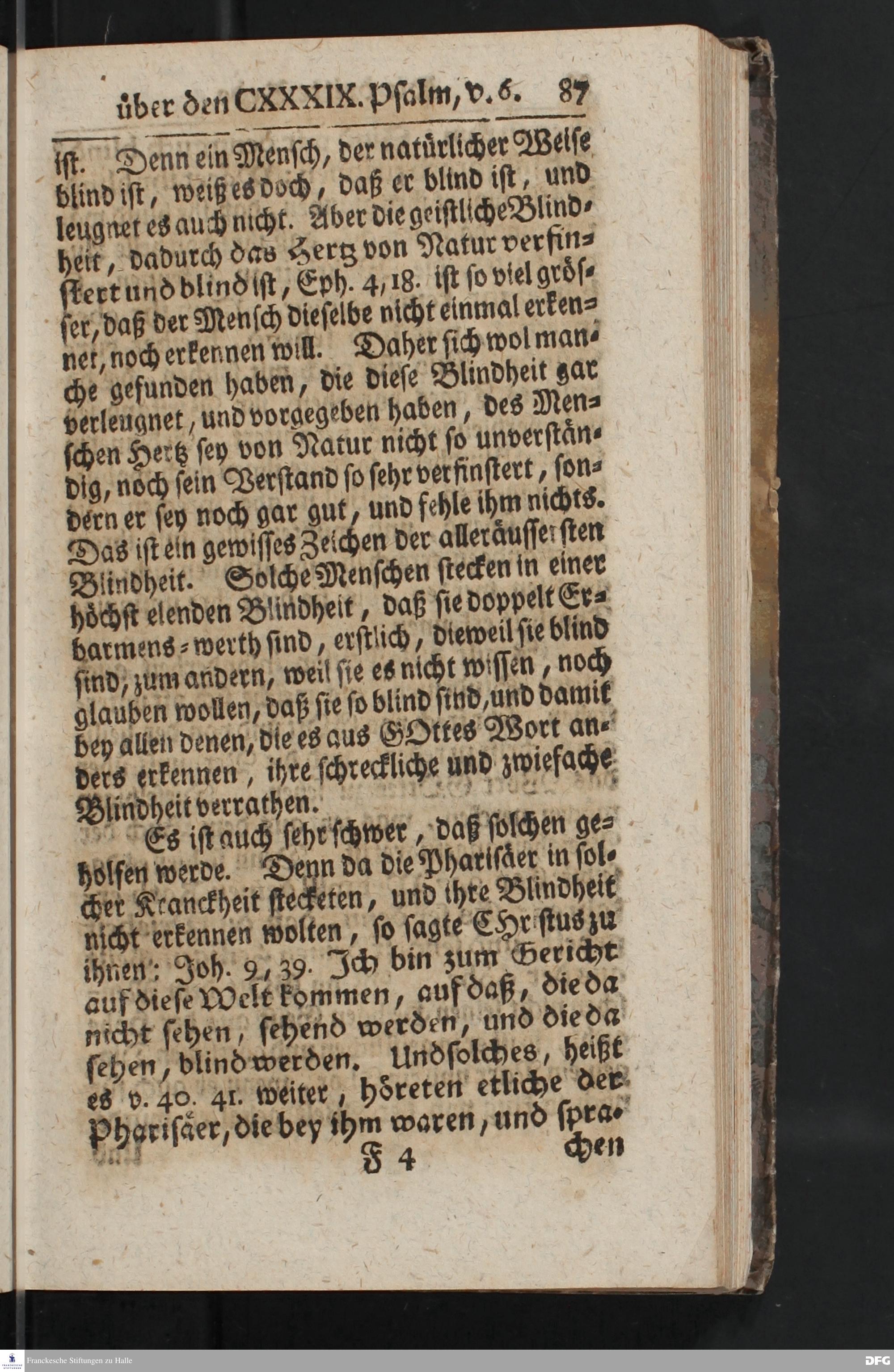 August Hermann Franckens, Weyl.Prof.Theol.Past.Ulr.und Schol. Erklärung Des hundert und neun und dreyßigsten Psalms / Auf Verlangen besonders herausgegeben Von Gotthilf August Francken, S.Theol.Prof.Ord.der ersten Dioeces des Saal=Creyses Insp.u.Pred.zur L.Fr. Andere Auflage. HALLE, In Verlegung des Wäysenhauses, 1739.