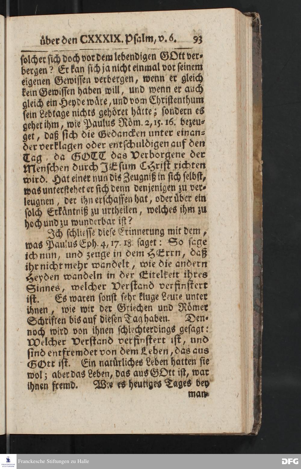 August Hermann Franckens, Weyl.Prof.Theol.Past.Ulr.und Schol. Erklärung Des hundert und neun und dreyßigsten Psalms / Auf Verlangen besonders herausgegeben Von Gotthilf August Francken, S.Theol.Prof.Ord.der ersten Dioeces des Saal=Creyses Insp.u.Pred.zur L.Fr. Andere Auflage. HALLE, In Verlegung des Wäysenhauses, 1739.