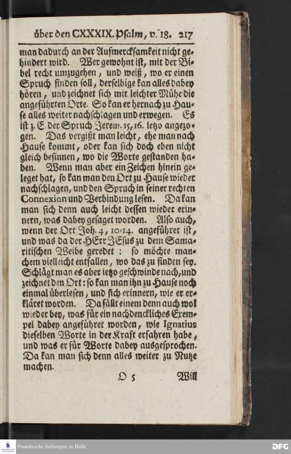 August Hermann Franckens, Weyl.Prof.Theol.Past.Ulr.und Schol. Erklärung Des hundert und neun und dreyßigsten Psalms / Auf Verlangen besonders herausgegeben Von Gotthilf August Francken, S.Theol.Prof.Ord.der ersten Dioeces des Saal=Creyses Insp.u.Pred.zur L.Fr. Andere Auflage. HALLE, In Verlegung des Wäysenhauses, 1739.