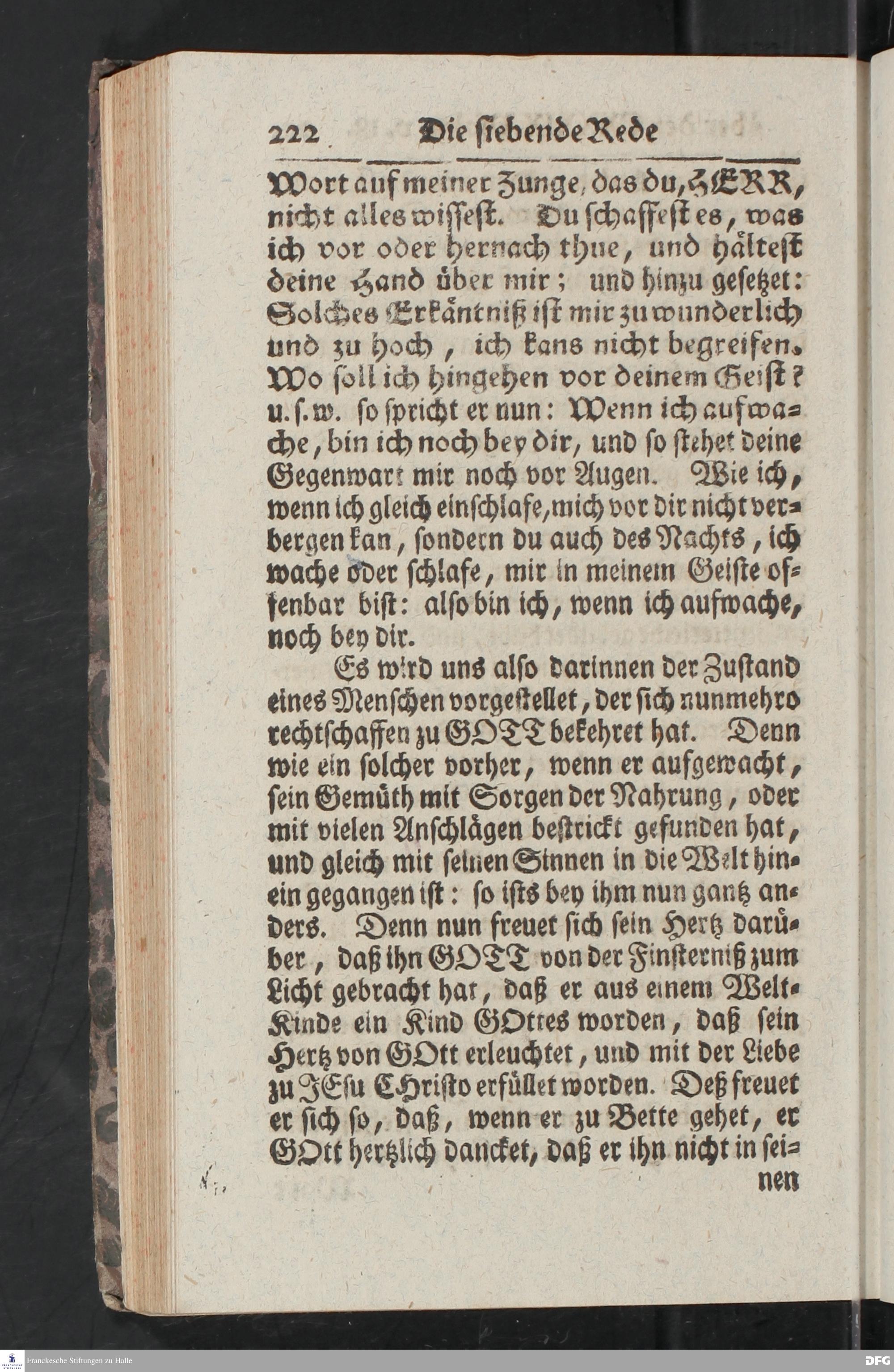 August Hermann Franckens, Weyl.Prof.Theol.Past.Ulr.und Schol. Erklärung Des hundert und neun und dreyßigsten Psalms / Auf Verlangen besonders herausgegeben Von Gotthilf August Francken, S.Theol.Prof.Ord.der ersten Dioeces des Saal=Creyses Insp.u.Pred.zur L.Fr. Andere Auflage. HALLE, In Verlegung des Wäysenhauses, 1739.