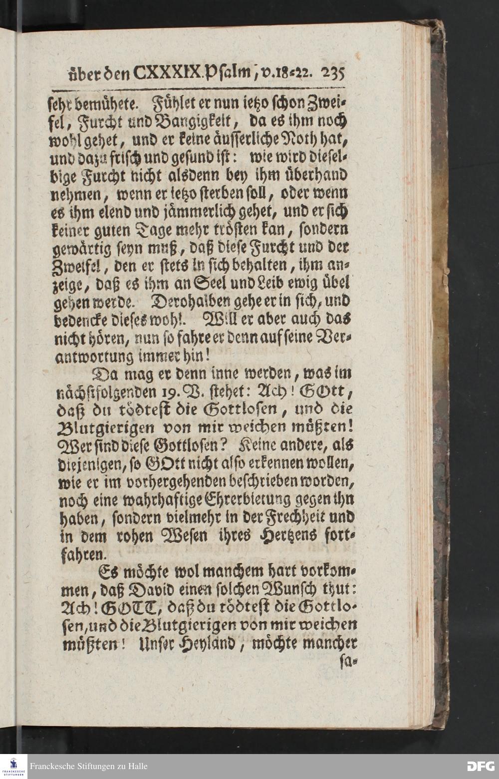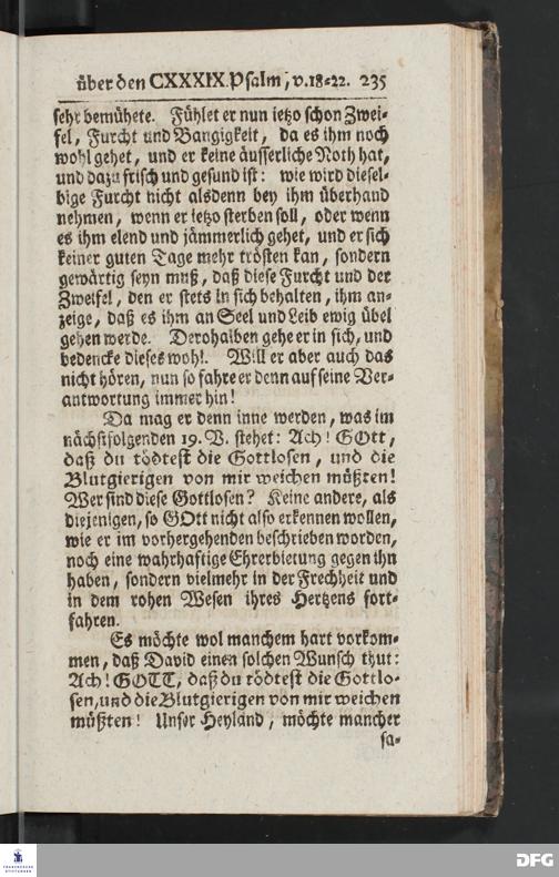 August Hermann Franckens, Weyl.Prof.Theol.Past.Ulr.und Schol. Erklärung Des hundert und neun und dreyßigsten Psalms / Auf Verlangen besonders herausgegeben Von Gotthilf August Francken, S.Theol.Prof.Ord.der ersten Dioeces des Saal=Creyses Insp.u.Pred.zur L.Fr. Andere Auflage. HALLE, In Verlegung des Wäysenhauses, 1739.