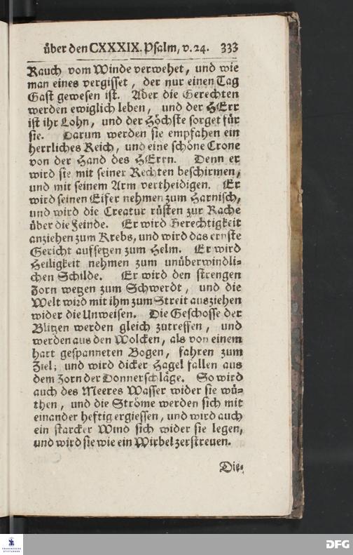 August Hermann Franckens, Weyl.Prof.Theol.Past.Ulr.und Schol. Erklärung Des hundert und neun und dreyßigsten Psalms / Auf Verlangen besonders herausgegeben Von Gotthilf August Francken, S.Theol.Prof.Ord.der ersten Dioeces des Saal=Creyses Insp.u.Pred.zur L.Fr. Andere Auflage. HALLE, In Verlegung des Wäysenhauses, 1739.