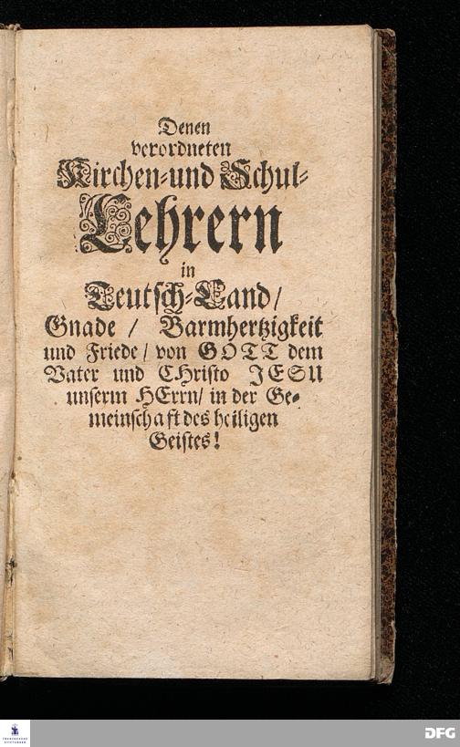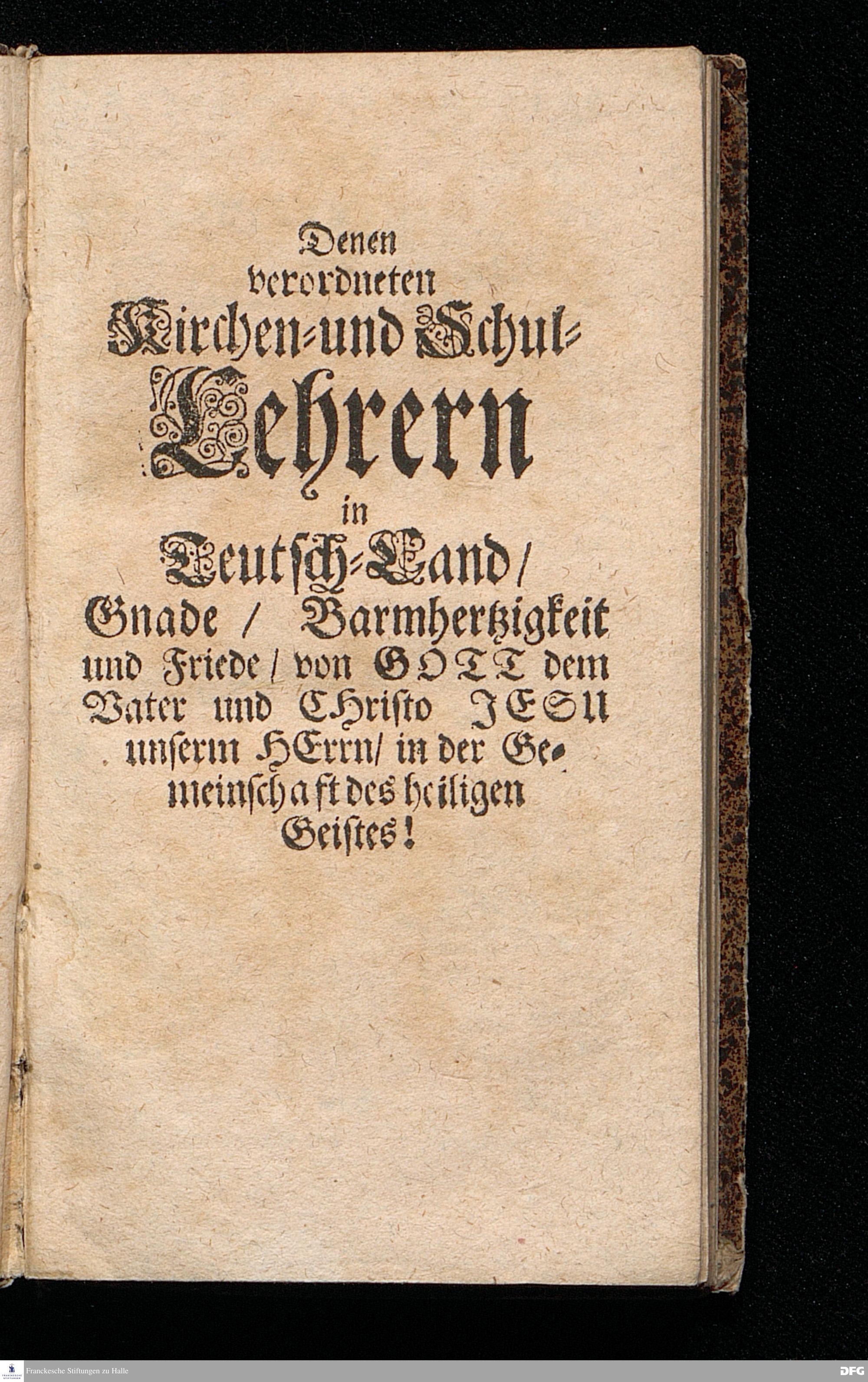 NICODEMUS Oder Tractätlein von der Menschen=Furcht / Deren Beschreibung / Ursachen / Kennzeichen, Schaden, Bemäntelung, dagegen geordneten Mitteln, und wie zu einem freudigen Glauben zu gelangen, und derselbe weislich und nützlich zu gebrauchen, Zu Pflantzung Der wahren Furcht GOttes / In allen Ständen heilsam / besonders aber Dem Lehr=Stande dediciret von August Hermann Francken / SS.Th.Pr.O.& Past.zu St.Ulrich in Halle. vierte Edition. HALLE, gedruckt im Waysenhause MDCCXV.