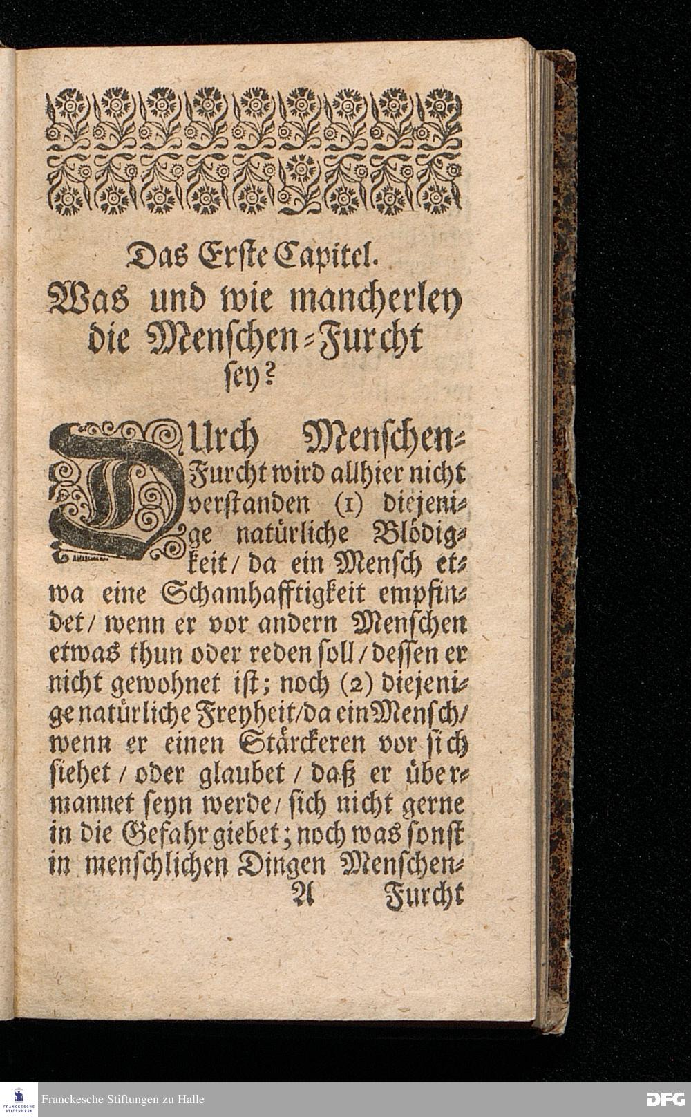 NICODEMUS Oder Tractätlein von der Menschen=Furcht / Deren Beschreibung / Ursachen / Kennzeichen, Schaden, Bemäntelung, dagegen geordneten Mitteln, und wie zu einem freudigen Glauben zu gelangen, und derselbe weislich und nützlich zu gebrauchen, Zu Pflantzung Der wahren Furcht GOttes / In allen Ständen heilsam / besonders aber Dem Lehr=Stande dediciret von August Hermann Francken / SS.Th.Pr.O.& Past.zu St.Ulrich in Halle. vierte Edition. HALLE, gedruckt im Waysenhause MDCCXV.