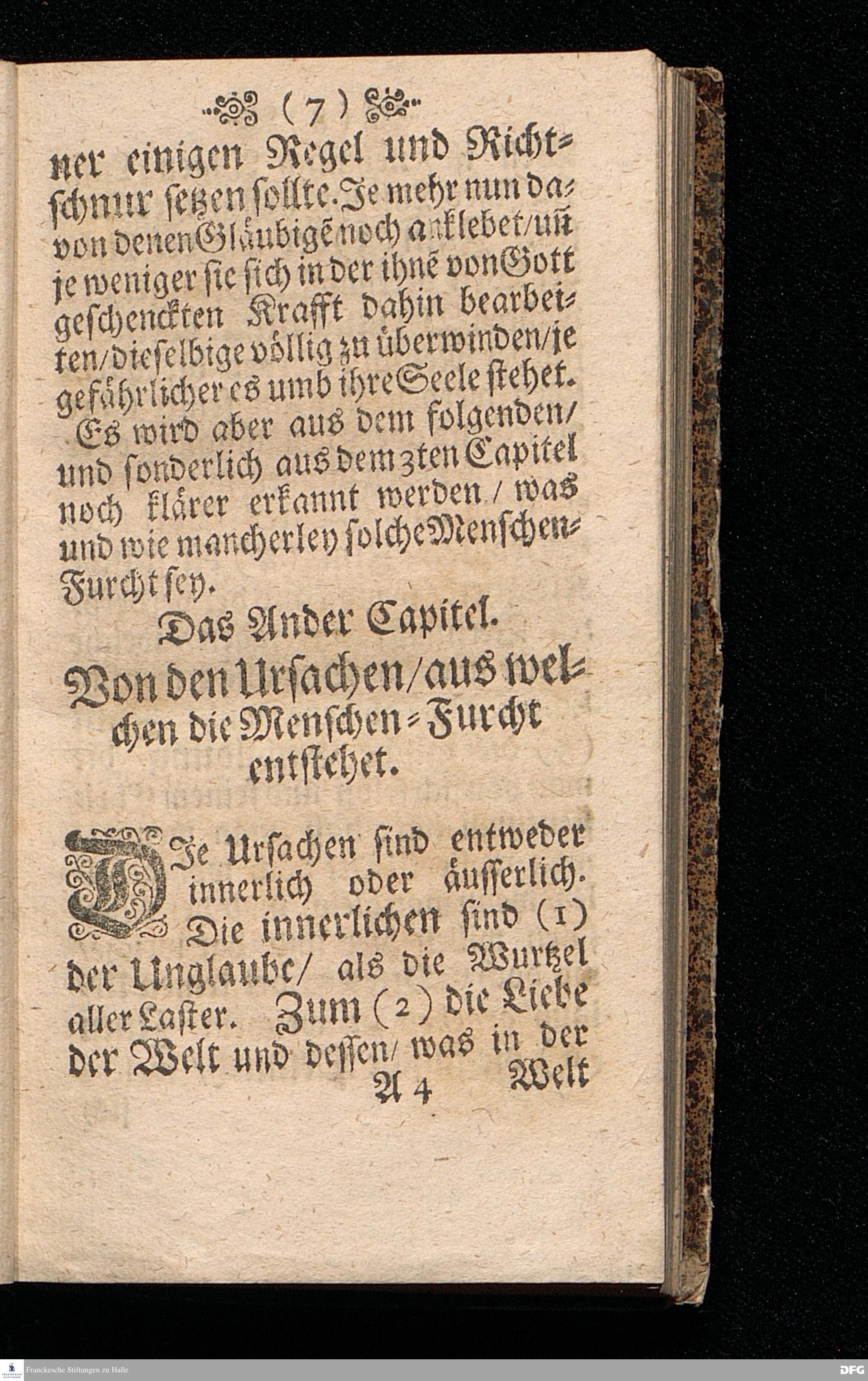 NICODEMUS Oder Tractätlein von der Menschen=Furcht / Deren Beschreibung / Ursachen / Kennzeichen, Schaden, Bemäntelung, dagegen geordneten Mitteln, und wie zu einem freudigen Glauben zu gelangen, und derselbe weislich und nützlich zu gebrauchen, Zu Pflantzung Der wahren Furcht GOttes / In allen Ständen heilsam / besonders aber Dem Lehr=Stande dediciret von August Hermann Francken / SS.Th.Pr.O.& Past.zu St.Ulrich in Halle. vierte Edition. HALLE, gedruckt im Waysenhause MDCCXV.
