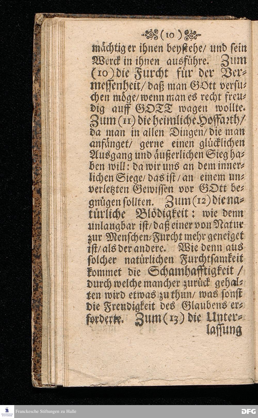 NICODEMUS Oder Tractätlein von der Menschen=Furcht / Deren Beschreibung / Ursachen / Kennzeichen, Schaden, Bemäntelung, dagegen geordneten Mitteln, und wie zu einem freudigen Glauben zu gelangen, und derselbe weislich und nützlich zu gebrauchen, Zu Pflantzung Der wahren Furcht GOttes / In allen Ständen heilsam / besonders aber Dem Lehr=Stande dediciret von August Hermann Francken / SS.Th.Pr.O.& Past.zu St.Ulrich in Halle. vierte Edition. HALLE, gedruckt im Waysenhause MDCCXV.