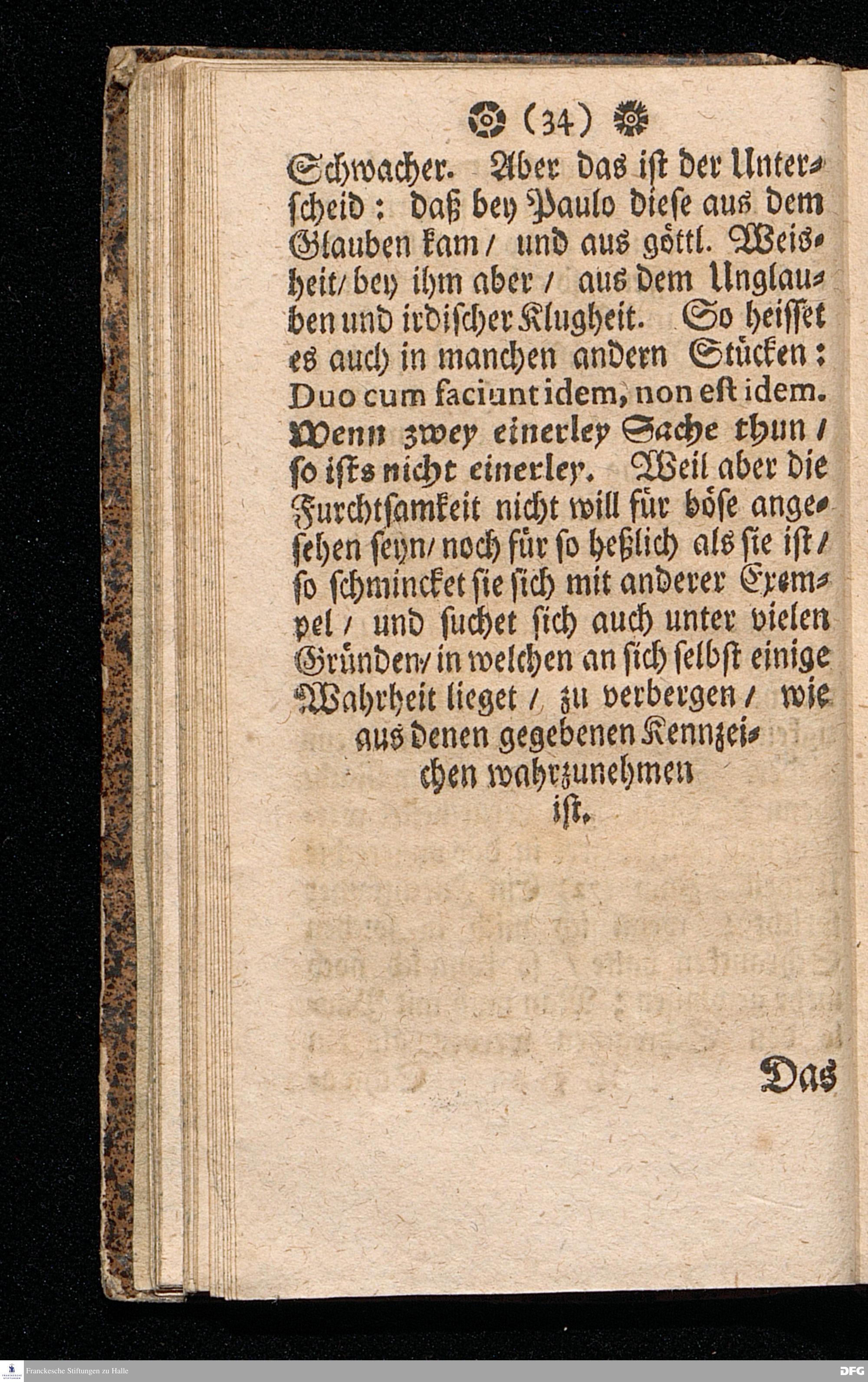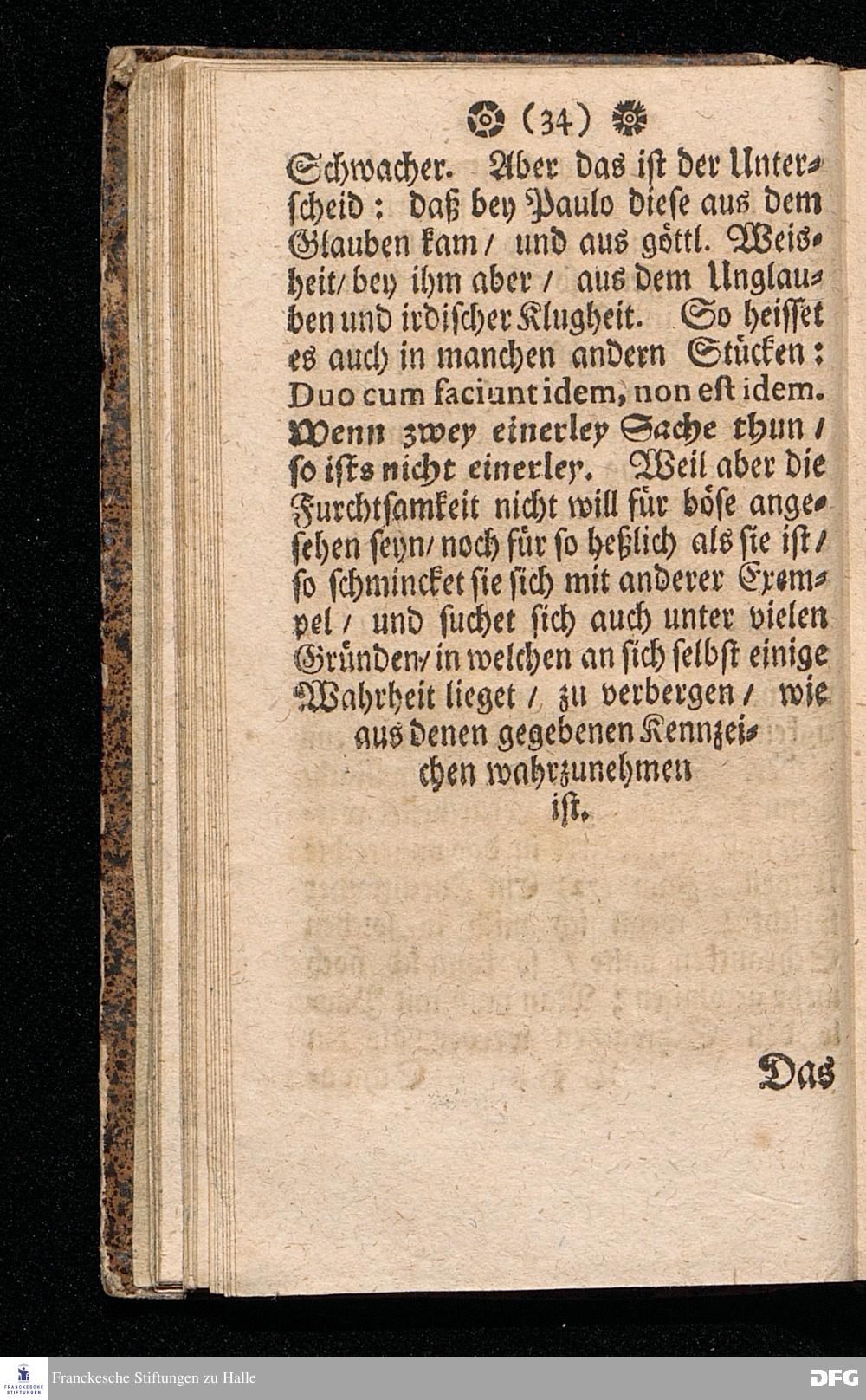 NICODEMUS Oder Tractätlein von der Menschen=Furcht / Deren Beschreibung / Ursachen / Kennzeichen, Schaden, Bemäntelung, dagegen geordneten Mitteln, und wie zu einem freudigen Glauben zu gelangen, und derselbe weislich und nützlich zu gebrauchen, Zu Pflantzung Der wahren Furcht GOttes / In allen Ständen heilsam / besonders aber Dem Lehr=Stande dediciret von August Hermann Francken / SS.Th.Pr.O.& Past.zu St.Ulrich in Halle. vierte Edition. HALLE, gedruckt im Waysenhause MDCCXV.