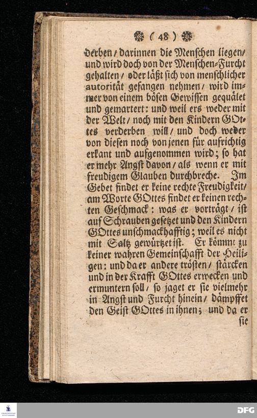 NICODEMUS Oder Tractätlein von der Menschen=Furcht / Deren Beschreibung / Ursachen / Kennzeichen, Schaden, Bemäntelung, dagegen geordneten Mitteln, und wie zu einem freudigen Glauben zu gelangen, und derselbe weislich und nützlich zu gebrauchen, Zu Pflantzung Der wahren Furcht GOttes / In allen Ständen heilsam / besonders aber Dem Lehr=Stande dediciret von August Hermann Francken / SS.Th.Pr.O.& Past.zu St.Ulrich in Halle. vierte Edition. HALLE, gedruckt im Waysenhause MDCCXV.