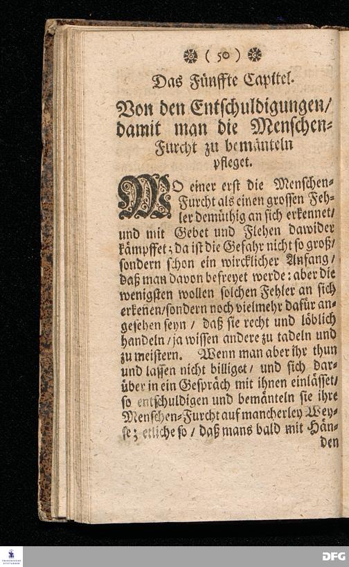 NICODEMUS Oder Tractätlein von der Menschen=Furcht / Deren Beschreibung / Ursachen / Kennzeichen, Schaden, Bemäntelung, dagegen geordneten Mitteln, und wie zu einem freudigen Glauben zu gelangen, und derselbe weislich und nützlich zu gebrauchen, Zu Pflantzung Der wahren Furcht GOttes / In allen Ständen heilsam / besonders aber Dem Lehr=Stande dediciret von August Hermann Francken / SS.Th.Pr.O.& Past.zu St.Ulrich in Halle. vierte Edition. HALLE, gedruckt im Waysenhause MDCCXV.