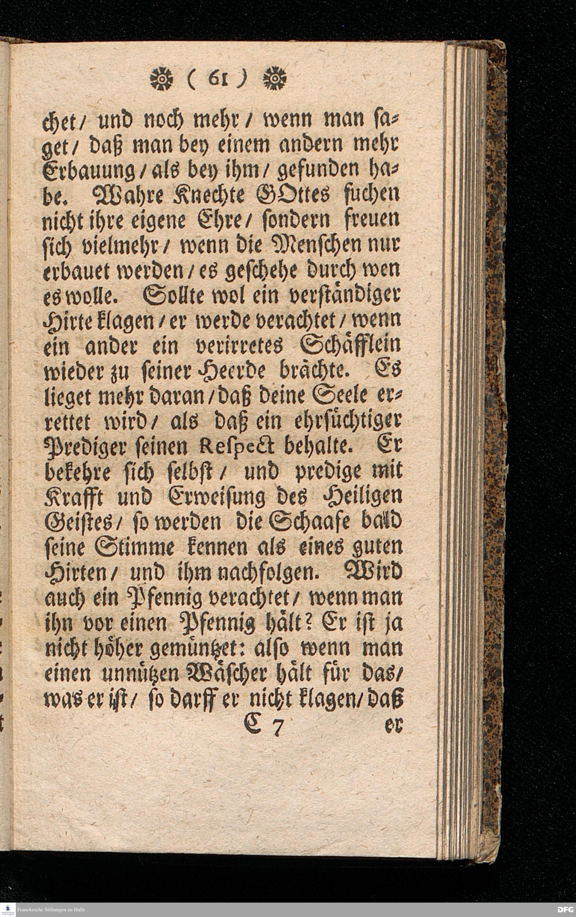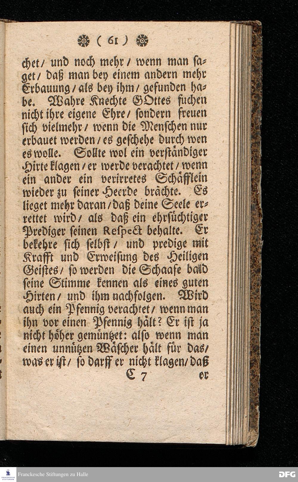 NICODEMUS Oder Tractätlein von der Menschen=Furcht / Deren Beschreibung / Ursachen / Kennzeichen, Schaden, Bemäntelung, dagegen geordneten Mitteln, und wie zu einem freudigen Glauben zu gelangen, und derselbe weislich und nützlich zu gebrauchen, Zu Pflantzung Der wahren Furcht GOttes / In allen Ständen heilsam / besonders aber Dem Lehr=Stande dediciret von August Hermann Francken / SS.Th.Pr.O.& Past.zu St.Ulrich in Halle. vierte Edition. HALLE, gedruckt im Waysenhause MDCCXV.